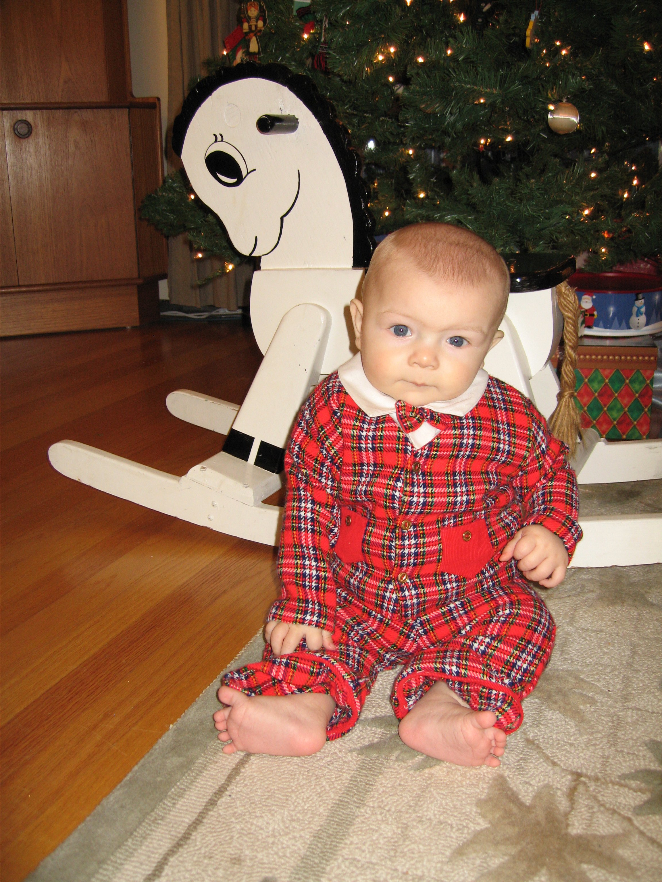 Cole sitting by horse at 6 months (12-16-2005 19:43)