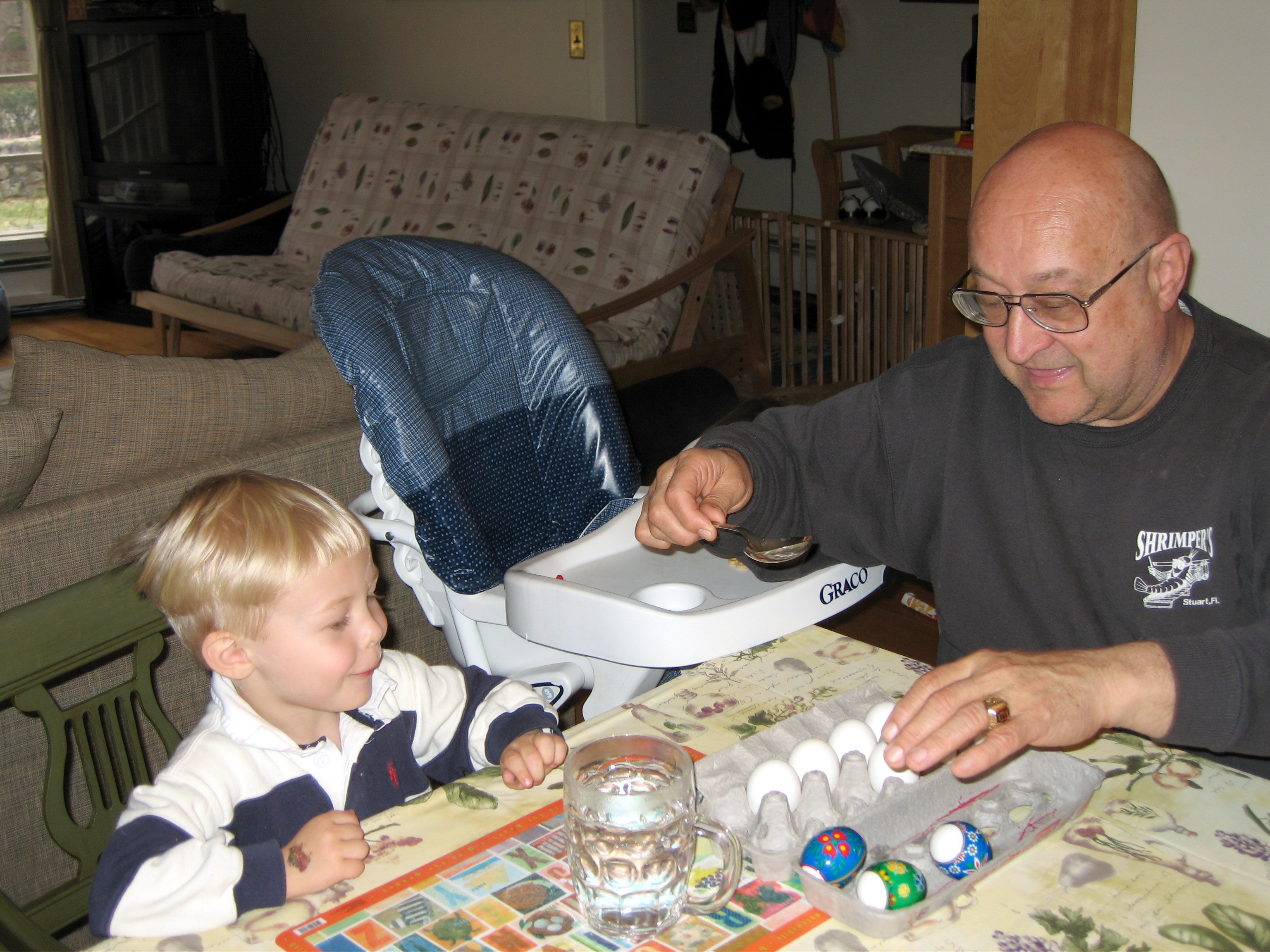 Tim, Cole and Poppy making Easter eggs (04-14-2006 18:01)