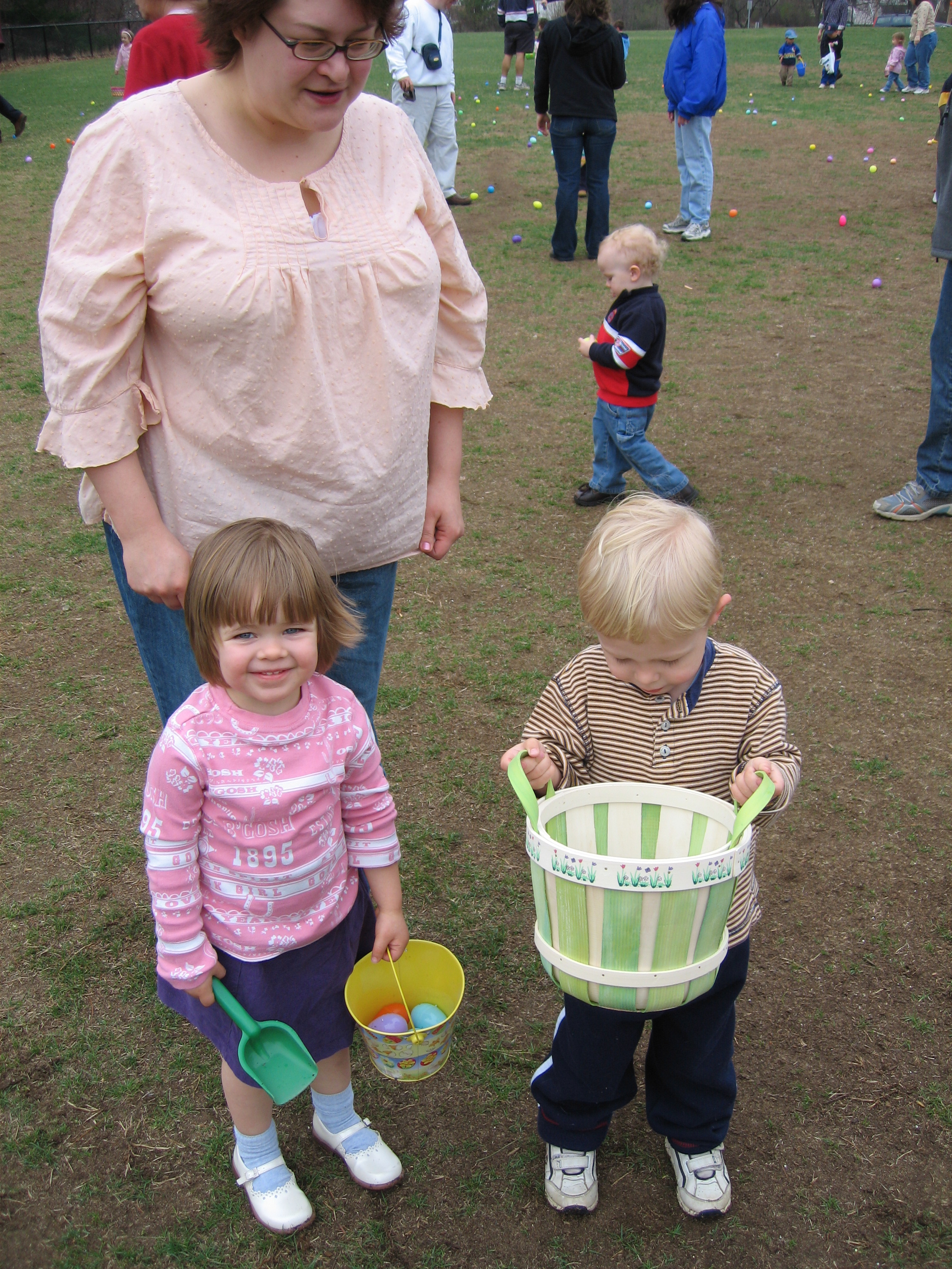 Emma, Xine and Tim with eggs (04-15-2006 11:07)