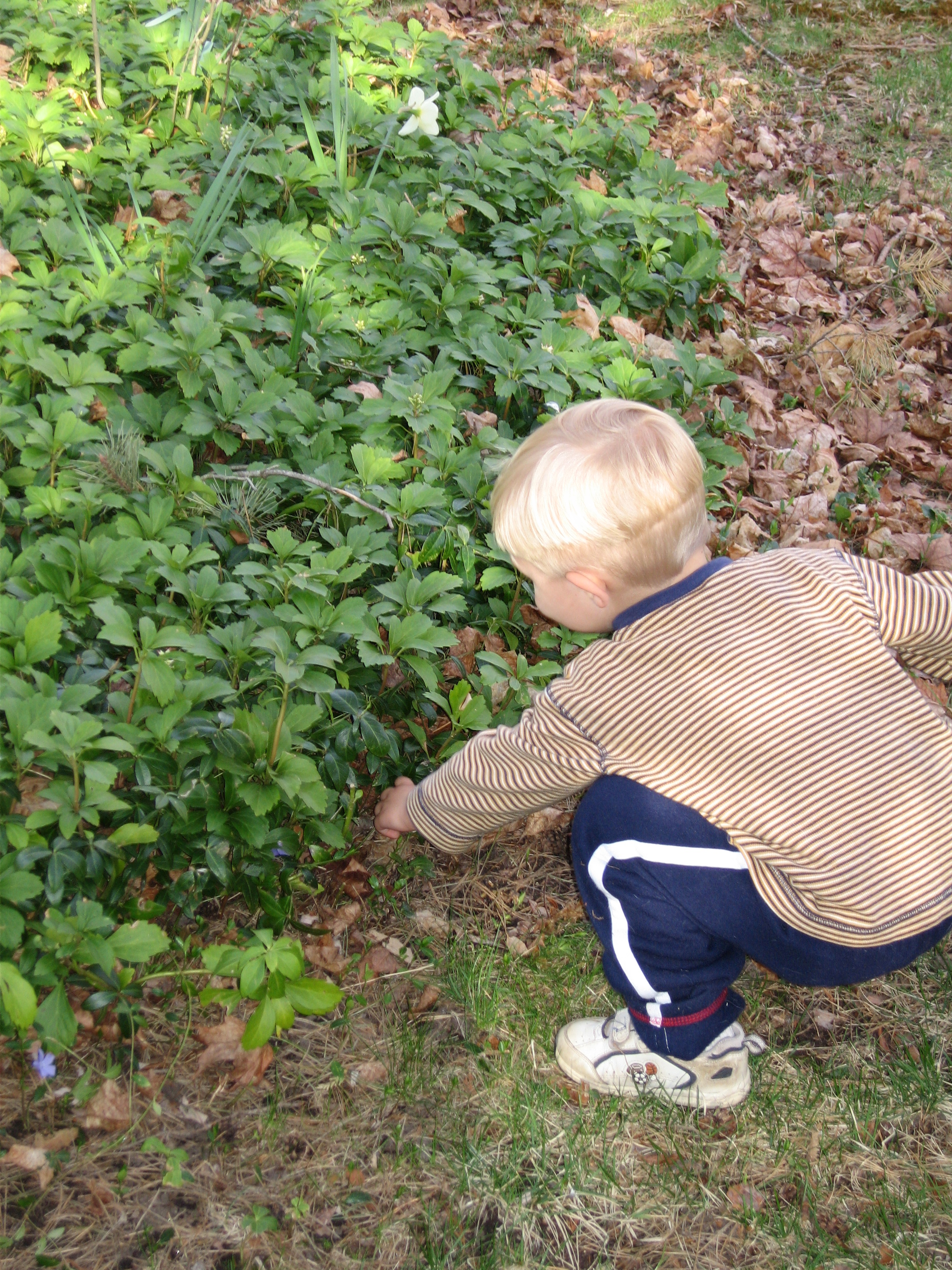 Tim hunting eggs at our house (04-15-2006 18:17)