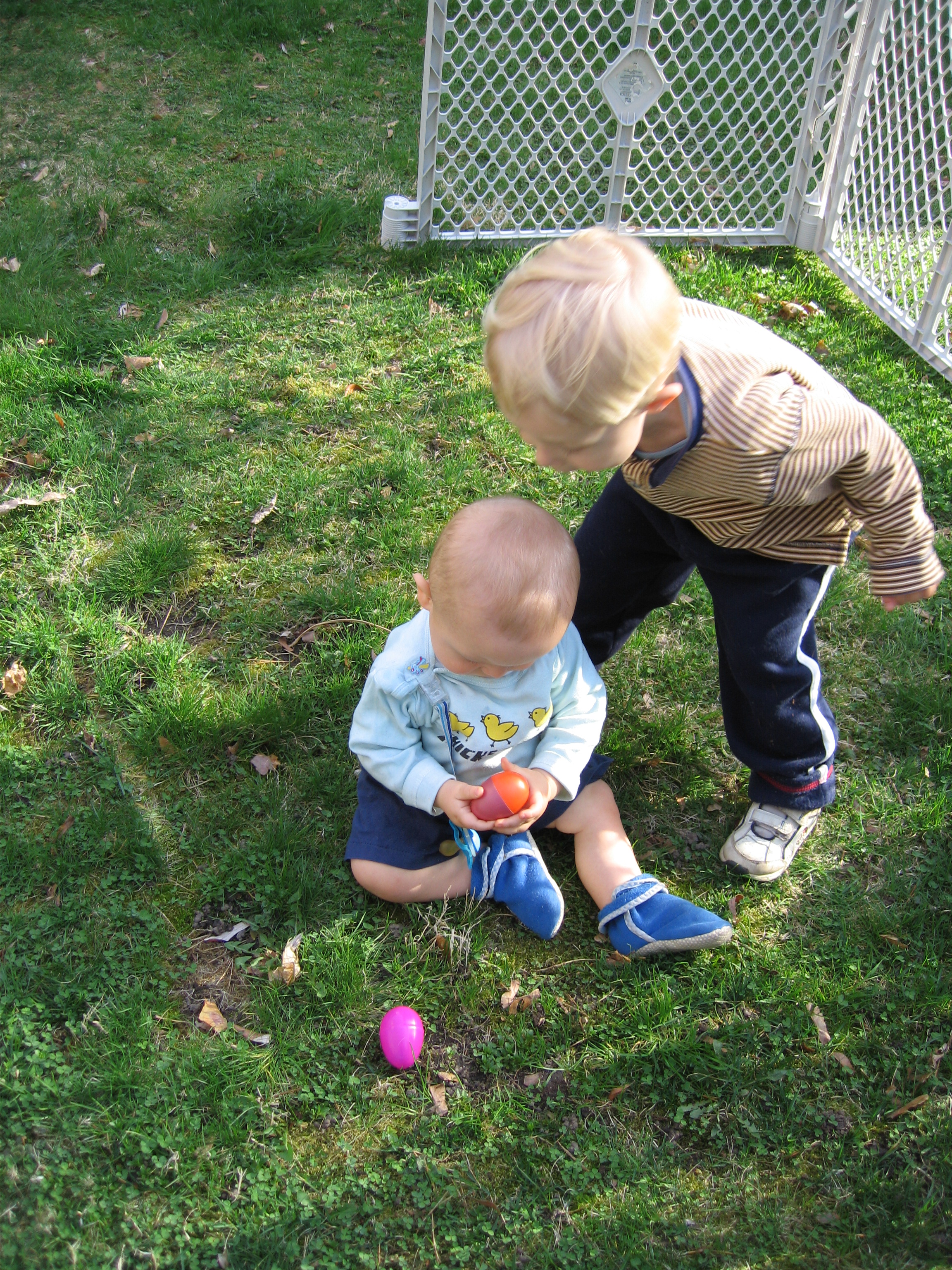Tim and Cole hunting eggs (04-15-2006 18:22)