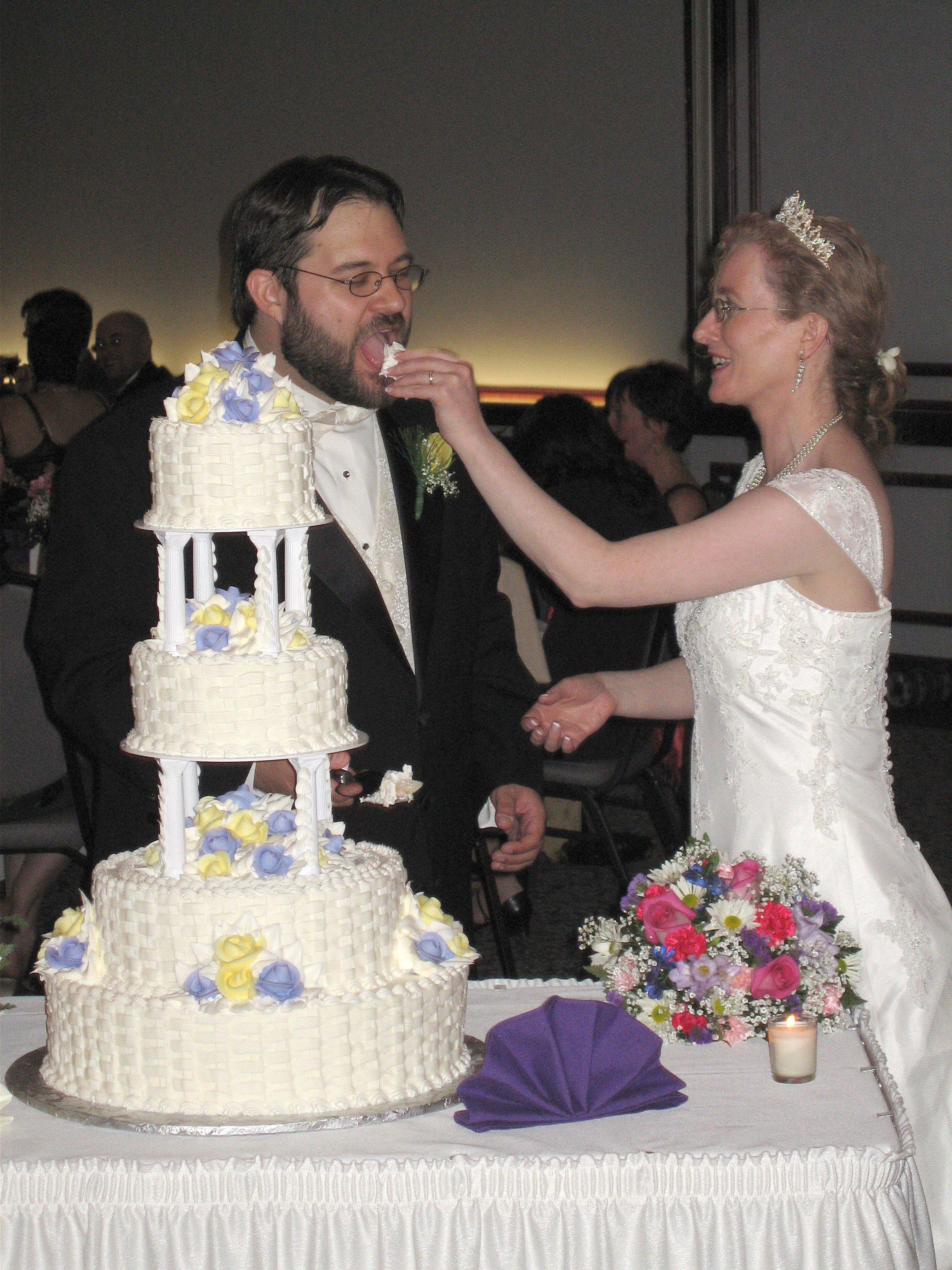 Juj and Marie cutting the cake (04-29-2006 22:52)