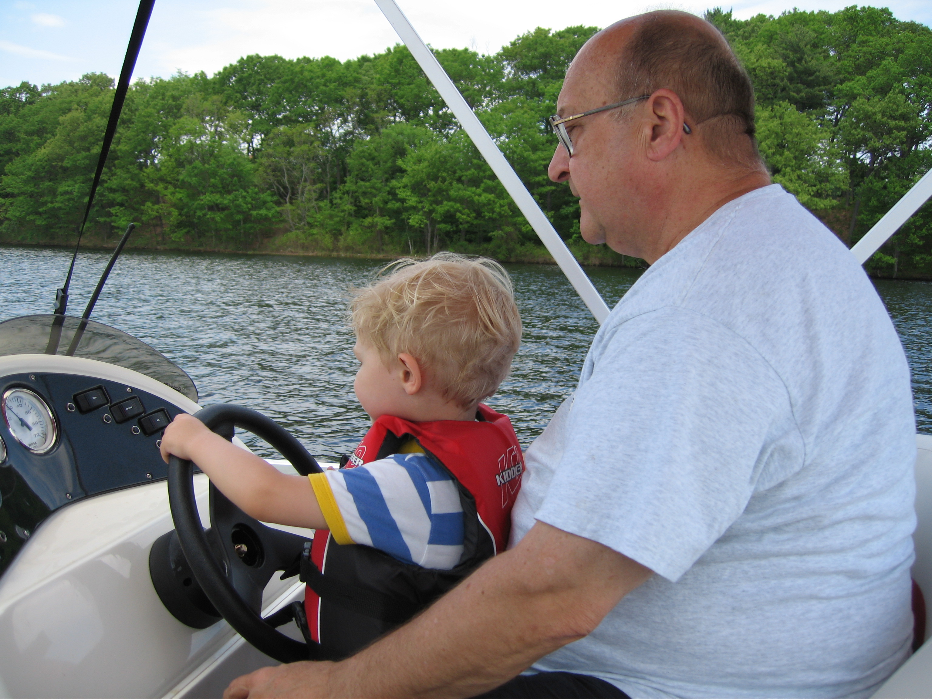 Tim and Poppy driving the boat (05-29-2006 20:38)