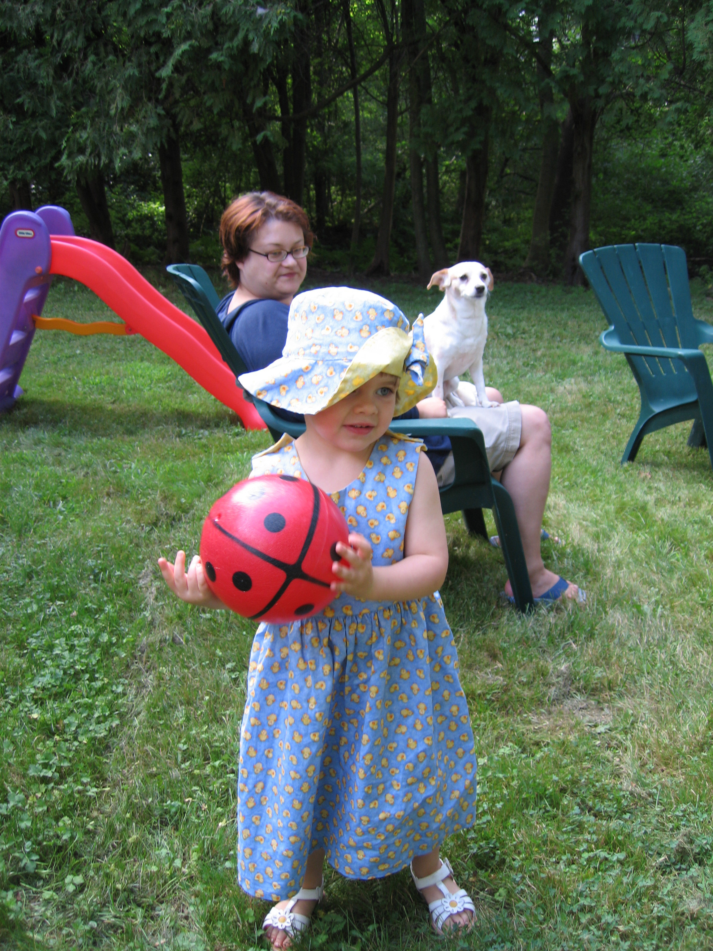 Emma in duck dress, Xine and Emily (08-13-2006 18:08)