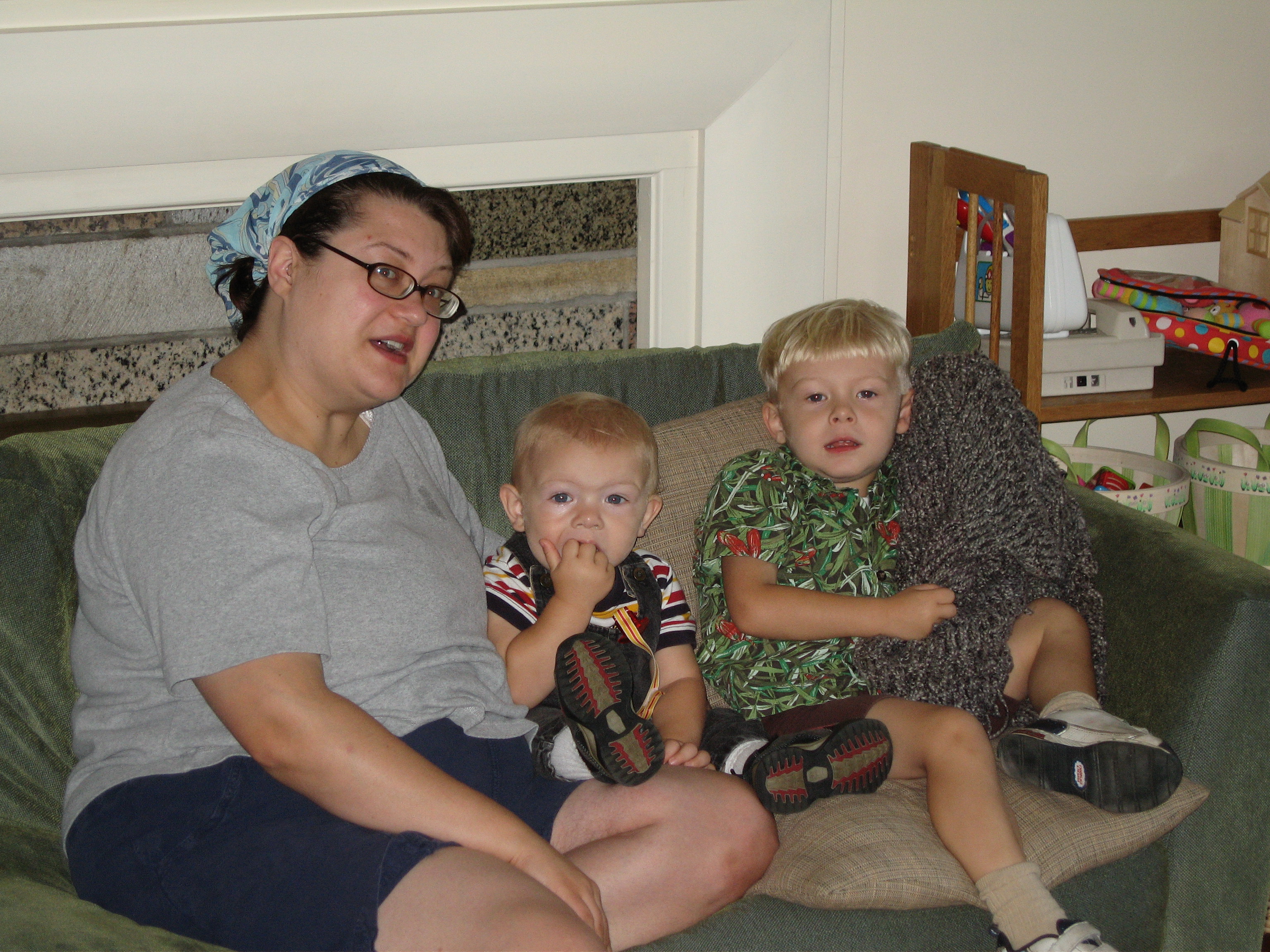 Xine, Cole and Tim on the couch (1st day of Montessori) (09-08-2006 09:07)