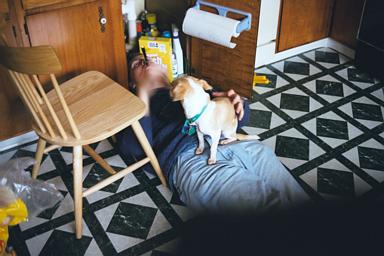 Emily helping the boy plumb