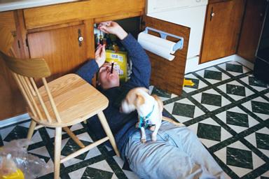 Emily helping the boy plumb