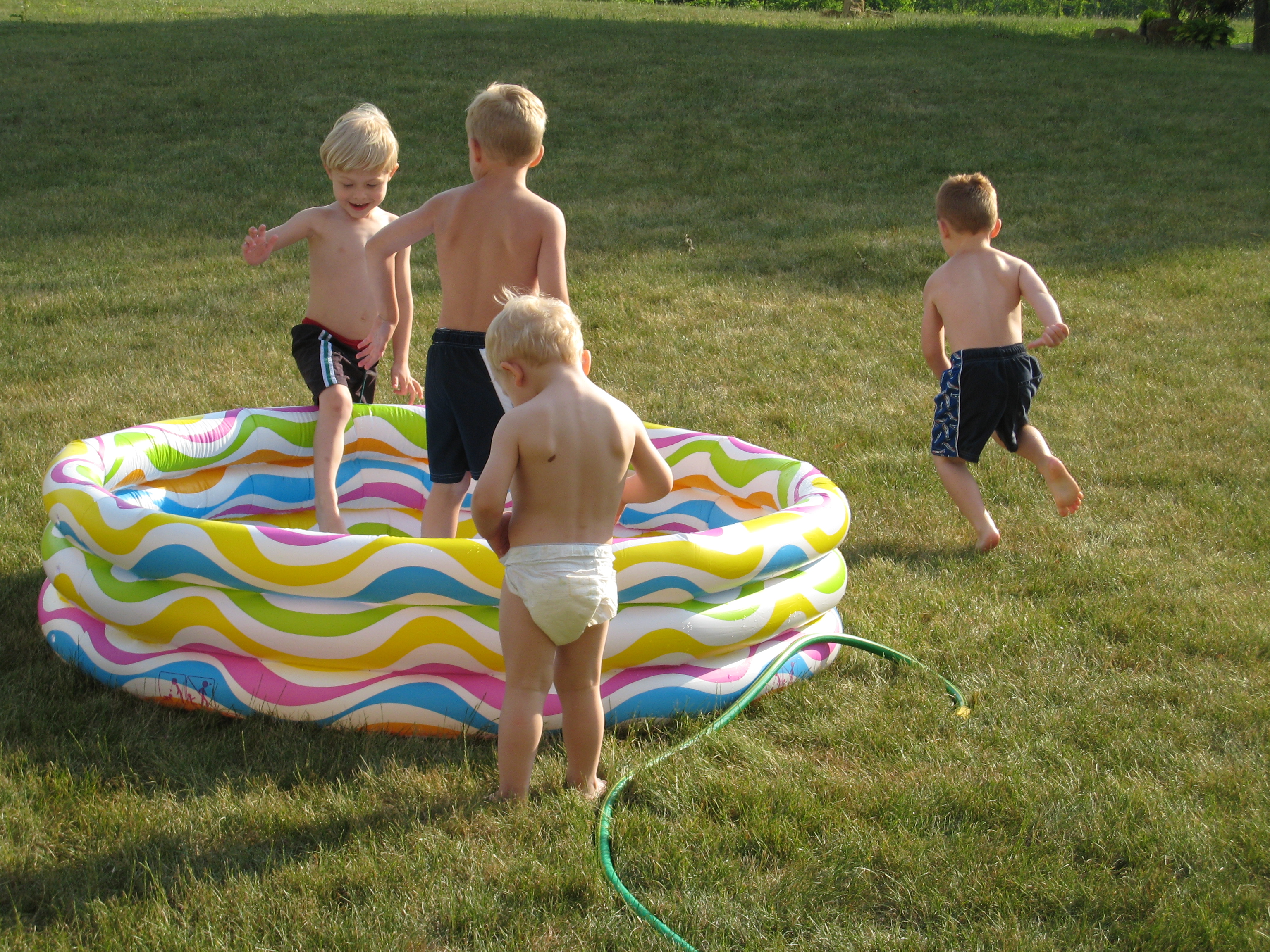 Tim, Noah, Cole and Tate playing with the pool (06-12-2007 18:23)