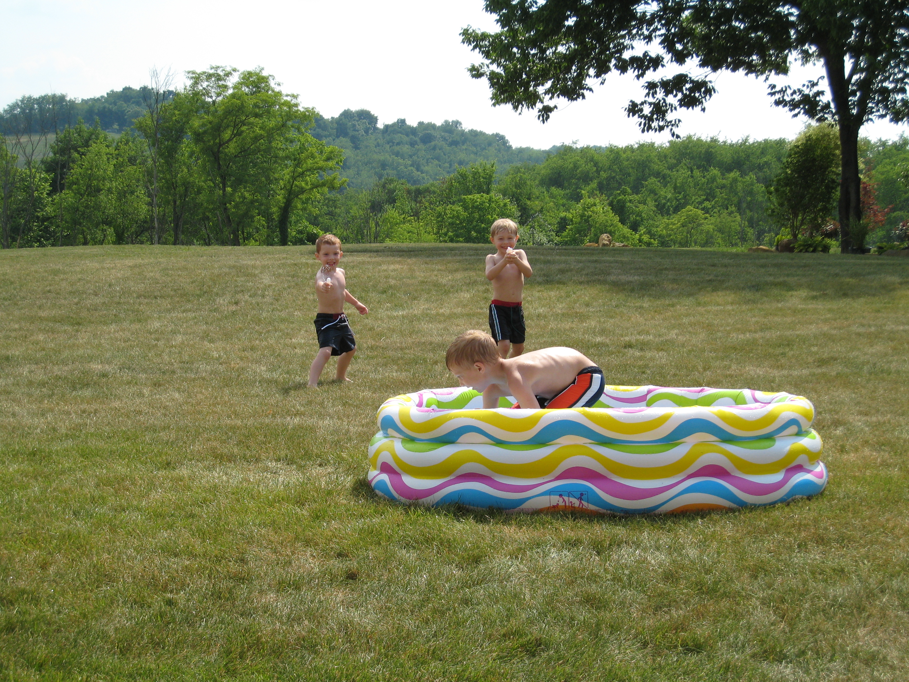 Tate, Tim and Noah playing with water guns (06-13-2007 16:04)