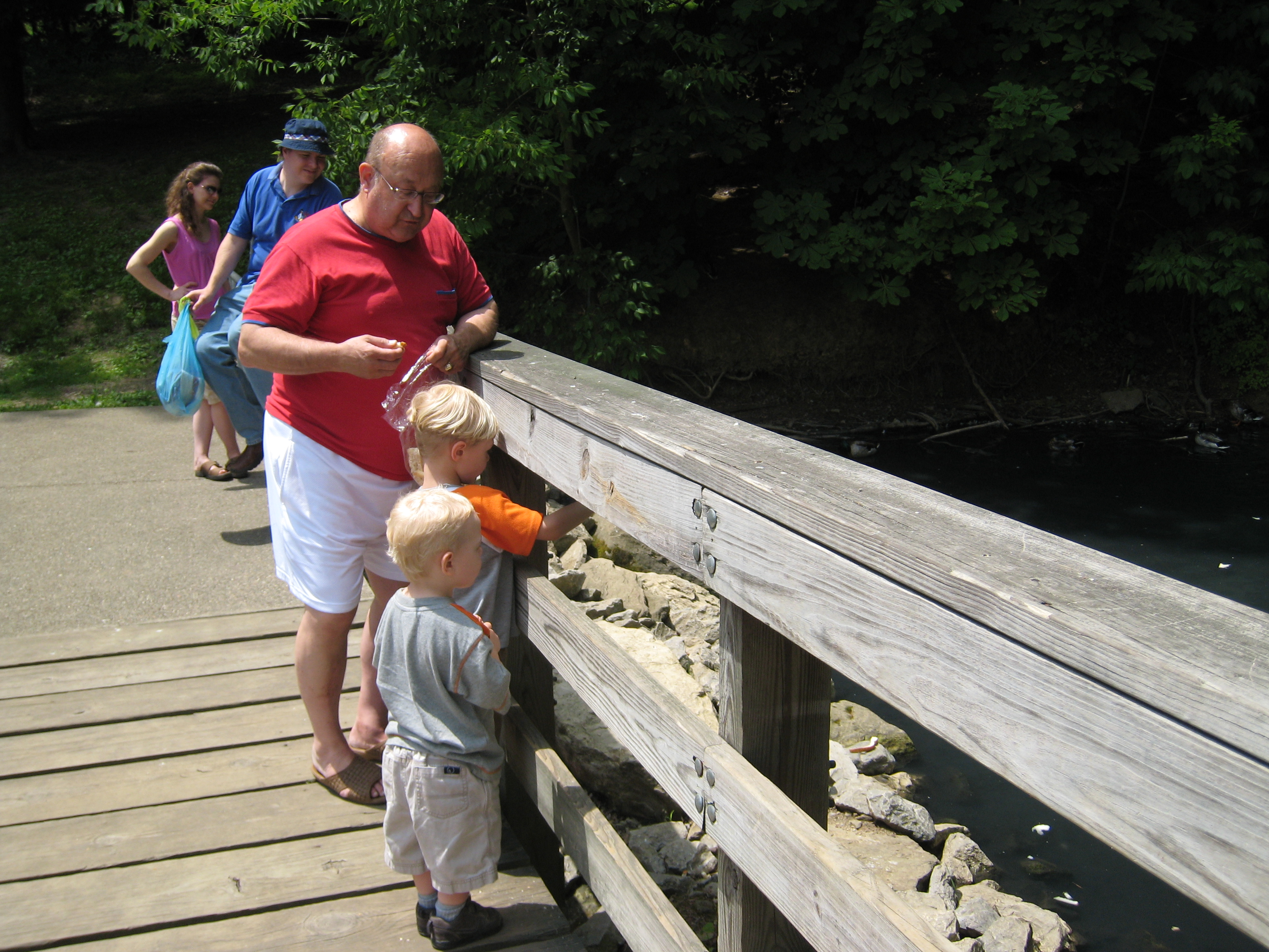 Poppy, Tim and Cole feeding the ducks with Kristin and Ben (06-16-2007 12:12)