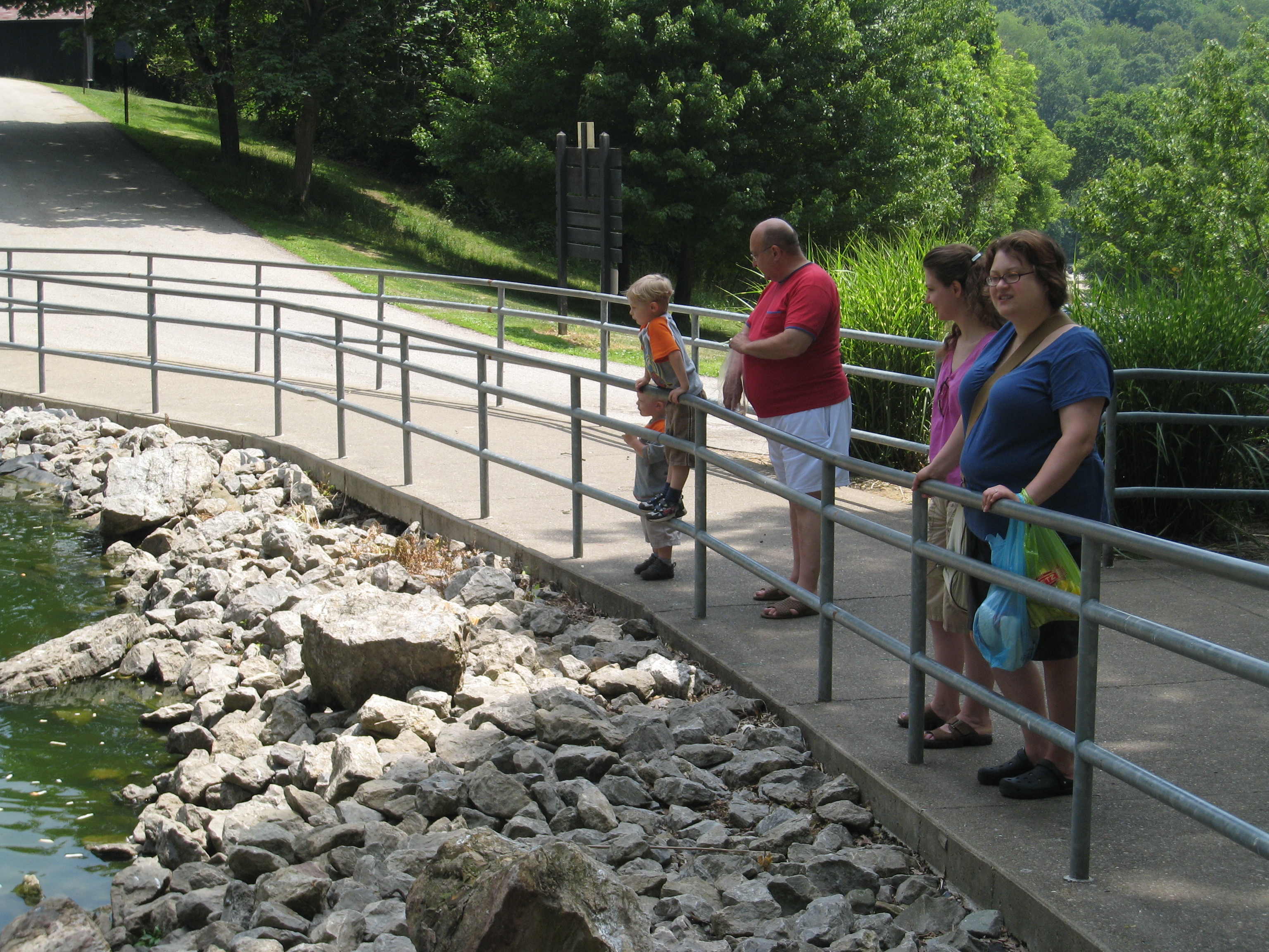 Cole, Tim, Poppy, Kristin and Christine feeding the ducks (06-16-2007 12:15)