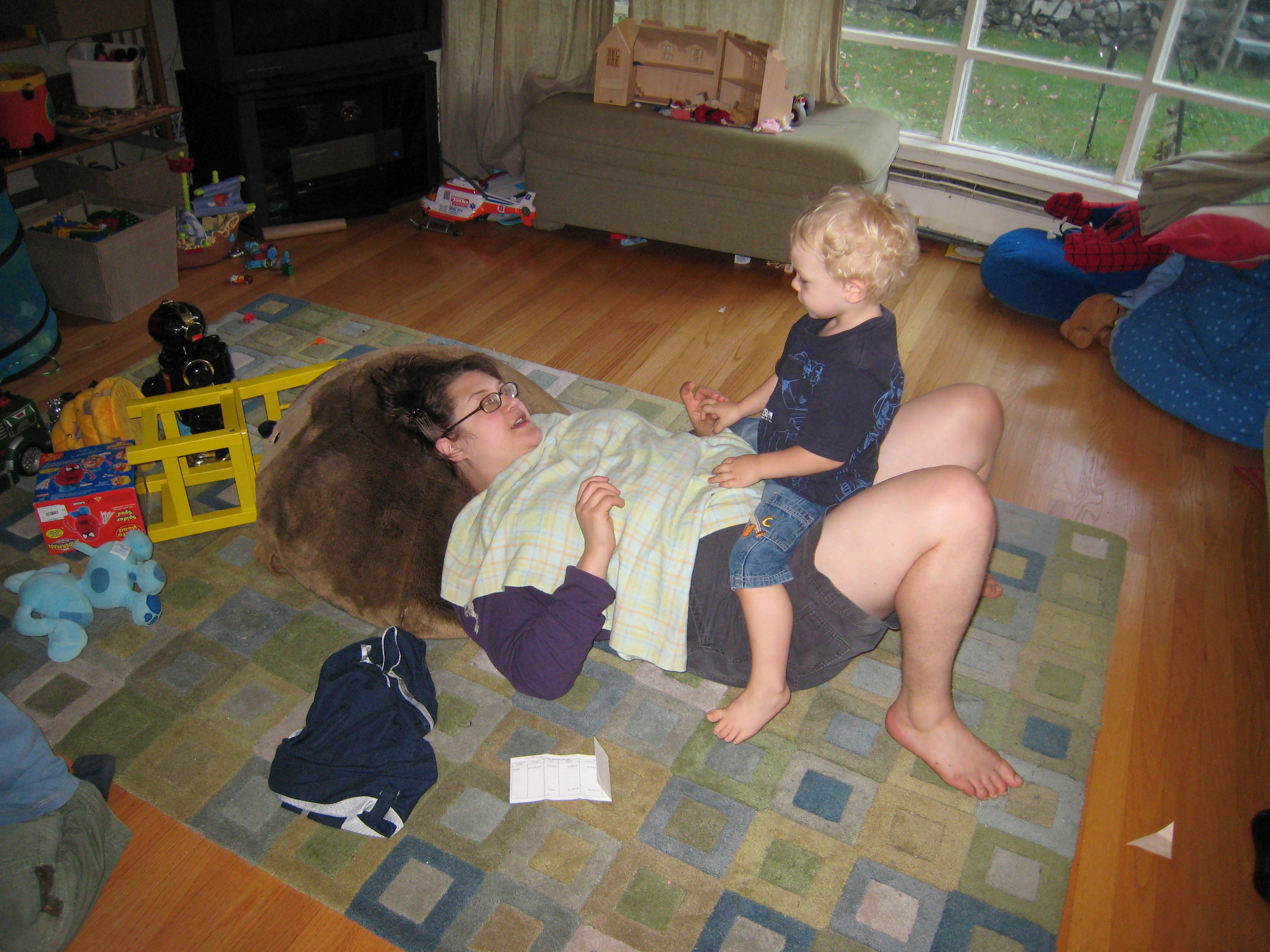 Cole jumping on Mommy (10-21-2007 17:11)