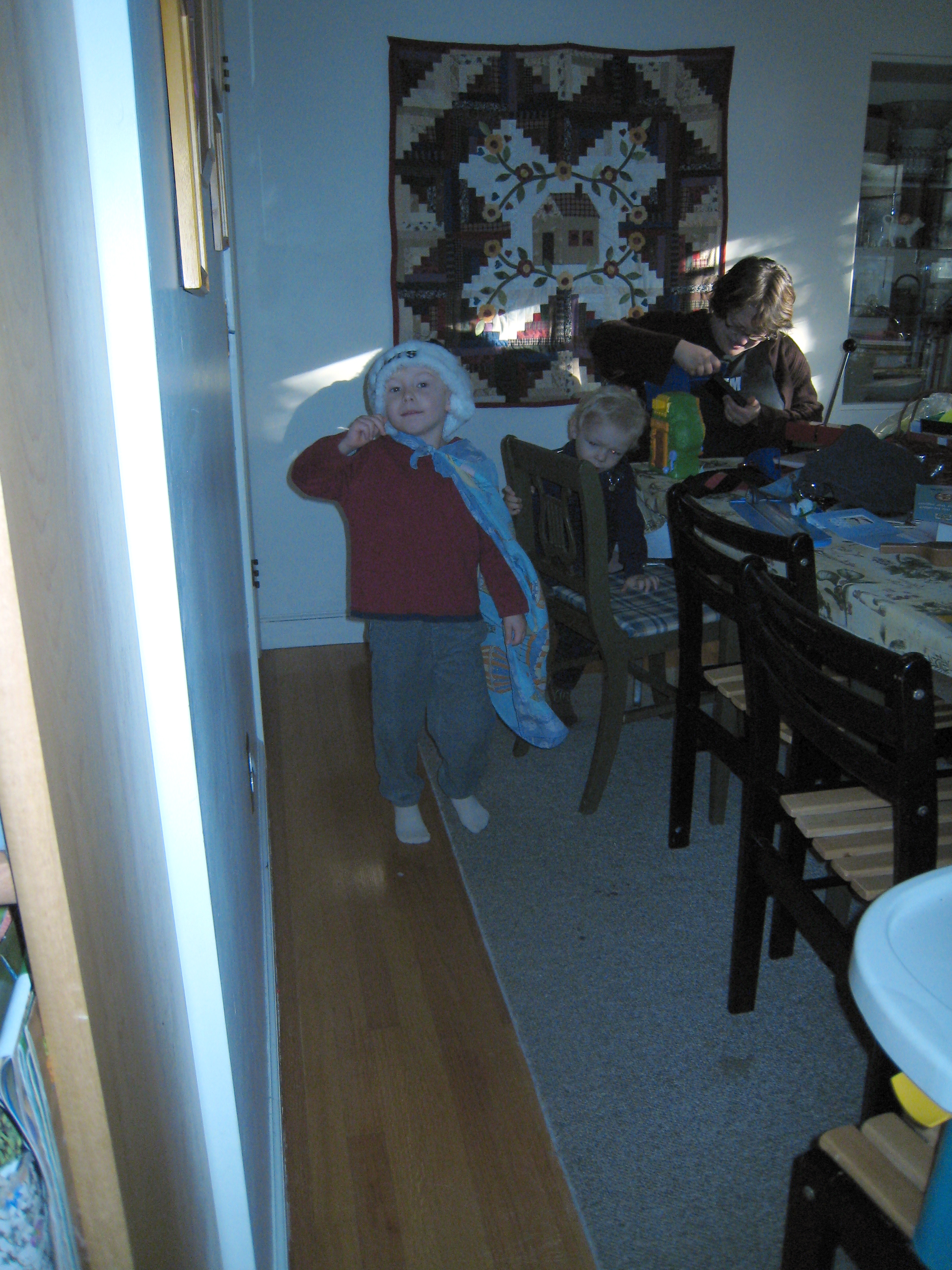 Christine with caped Tim and Cole (11-14-2007 08:00)
