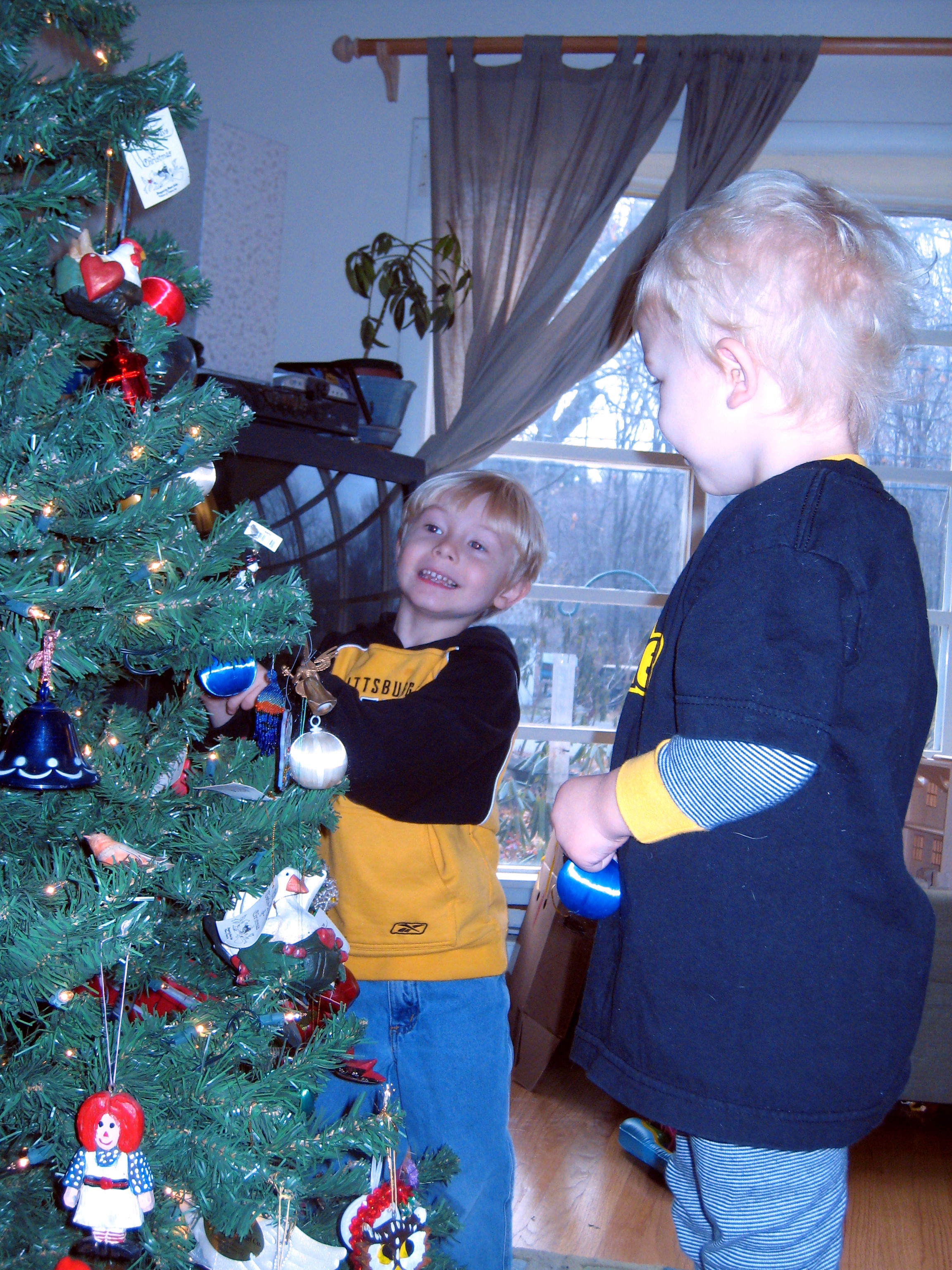 Tim and Cole decorating the tree (12-02-2007 08:25)