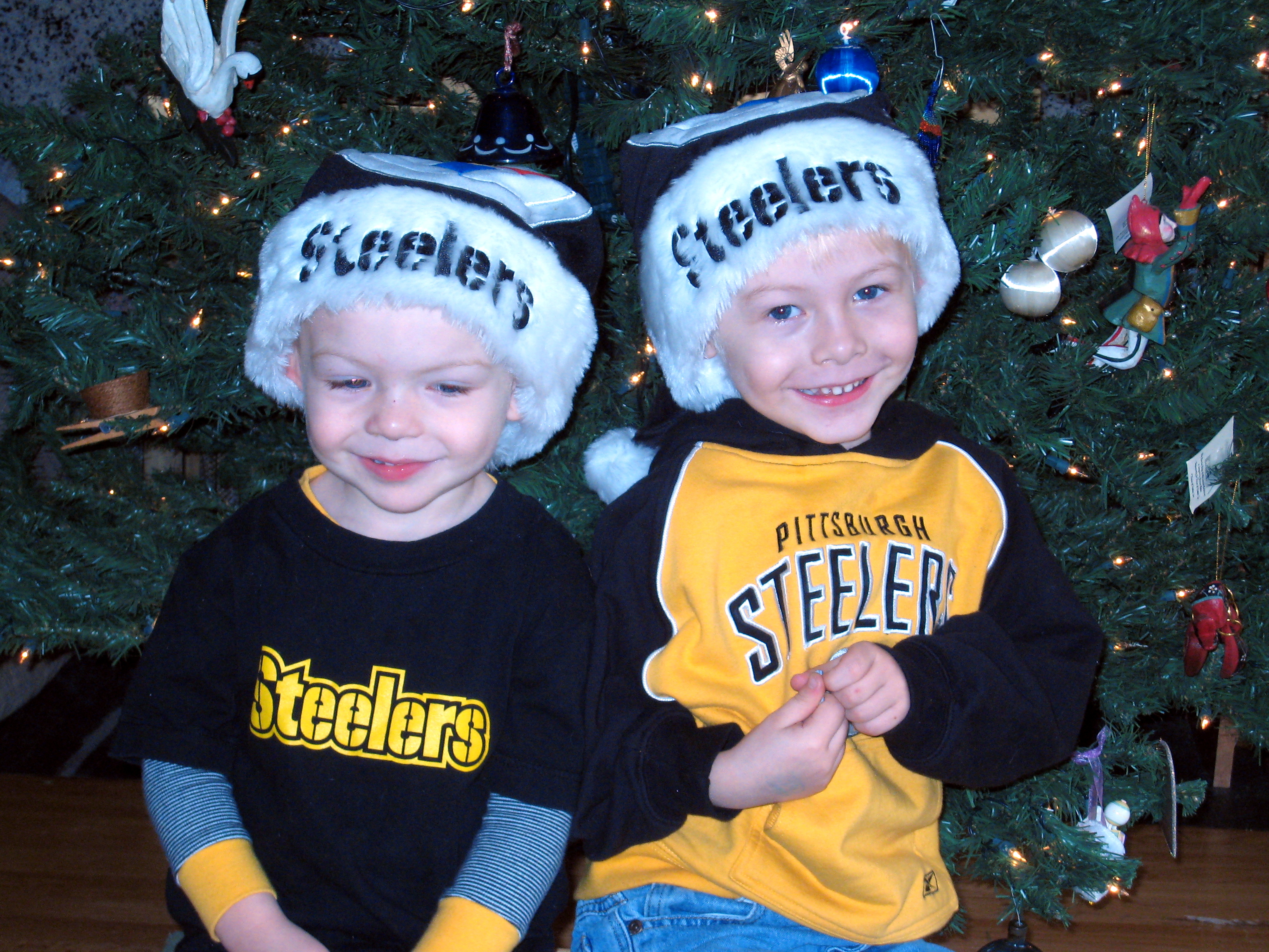 Tim and Cole in front of the tree (12-02-2007 08:43)