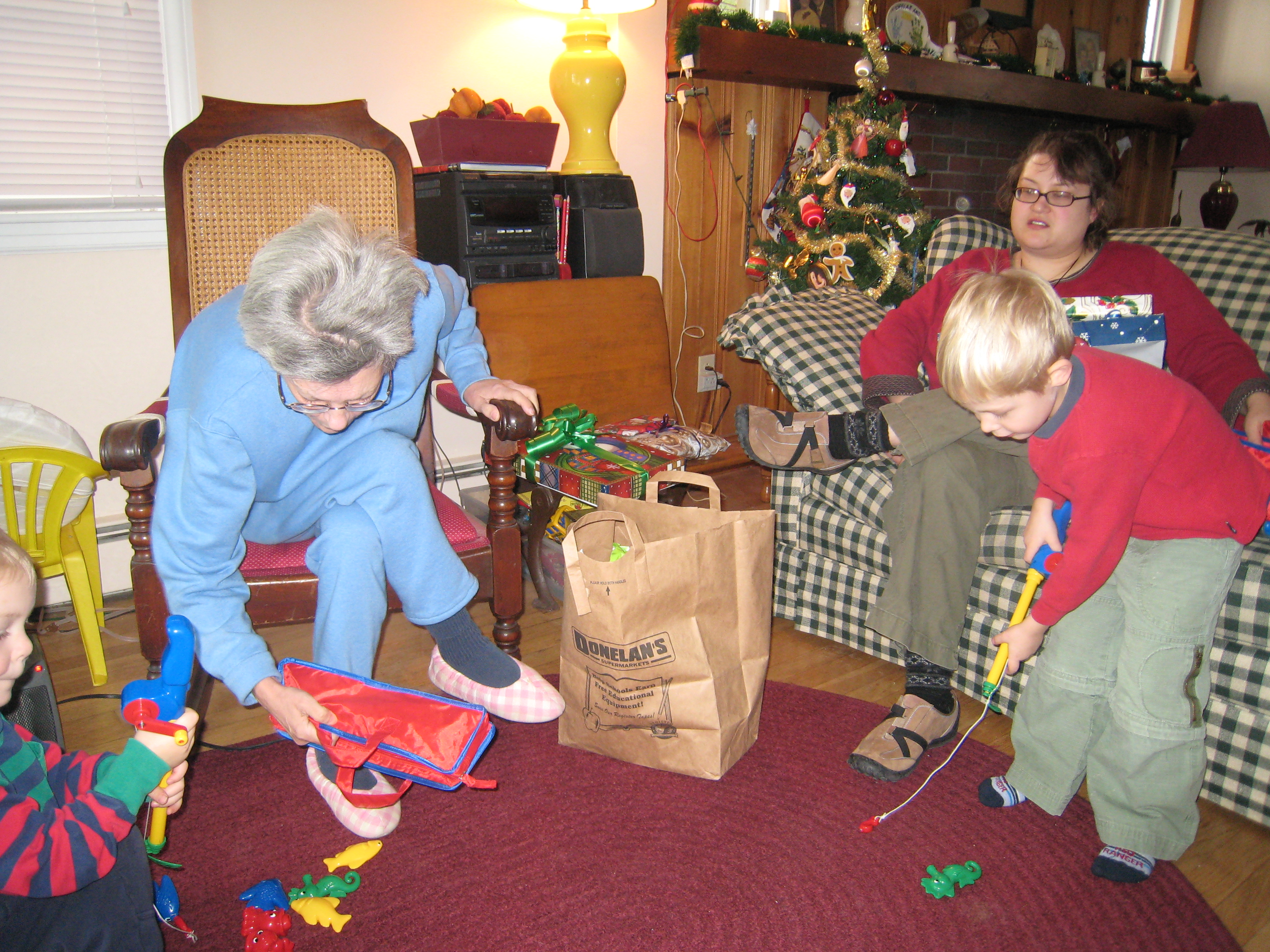 Cole, Nea, Mommy and Tim fishing (12-25-2007 10:26)