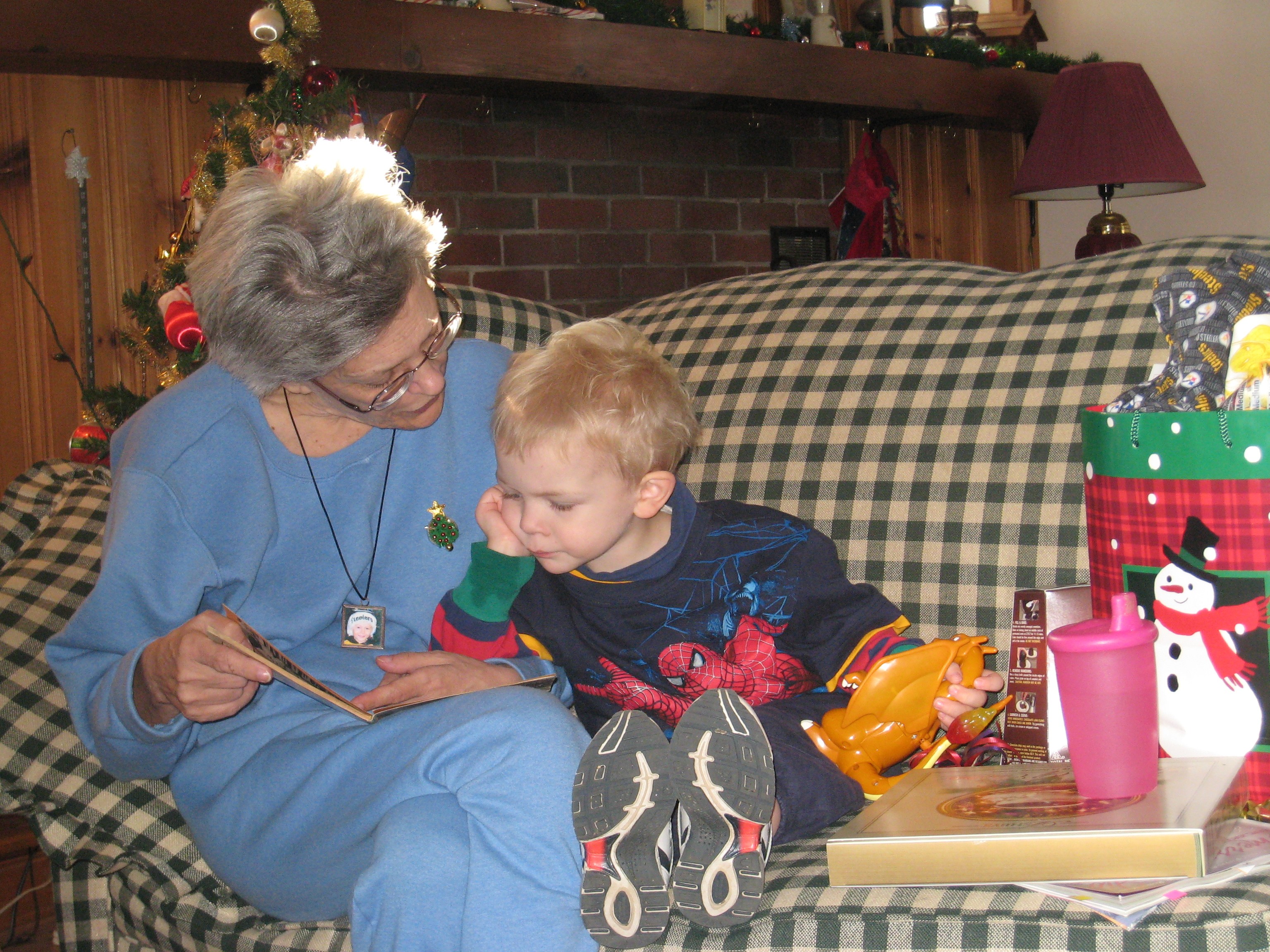 Nea reading to Cole (12-25-2007 12:35)
