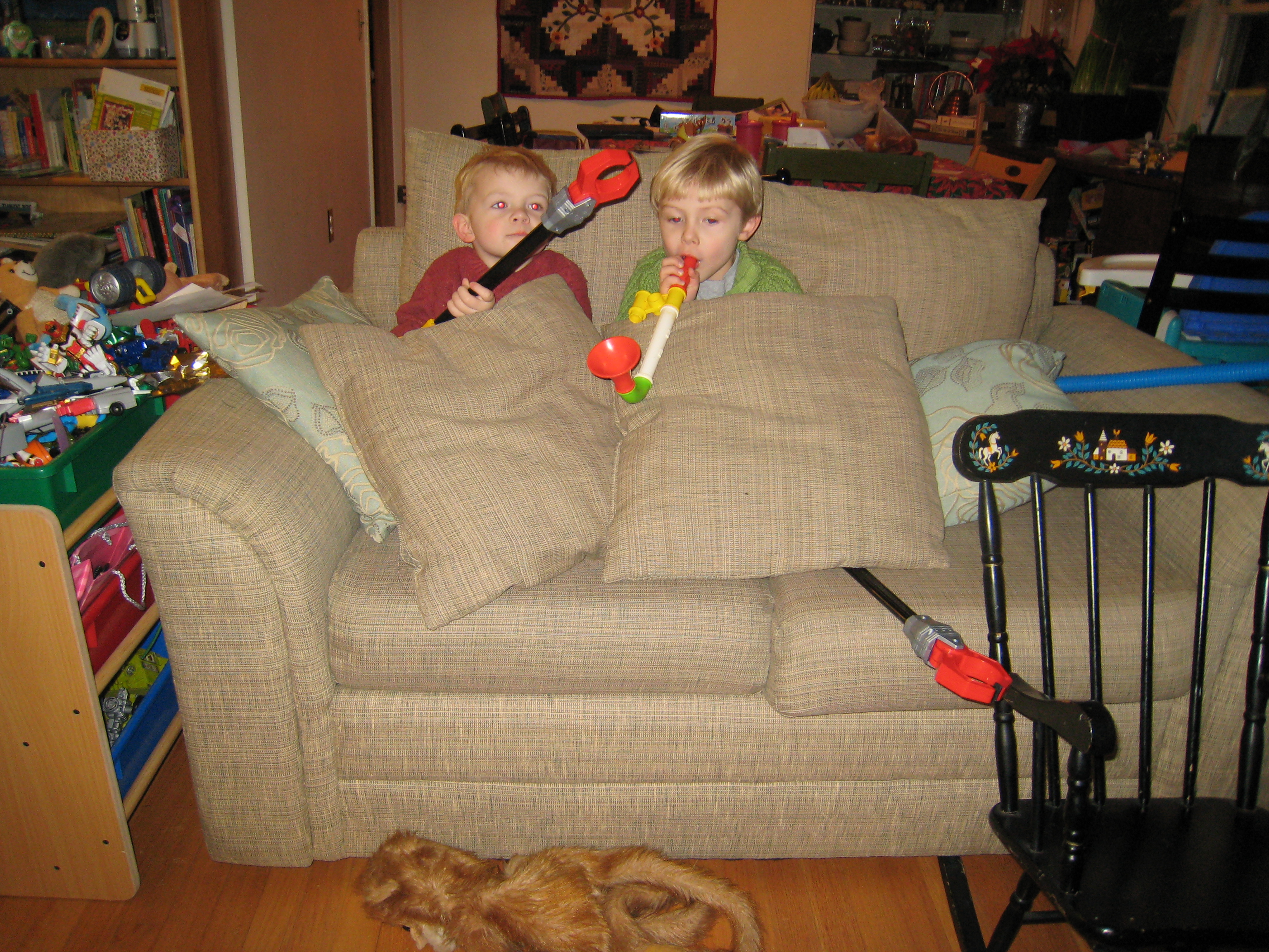 Cole and Tim playing alien spaceship (01-05-2008 15:47)