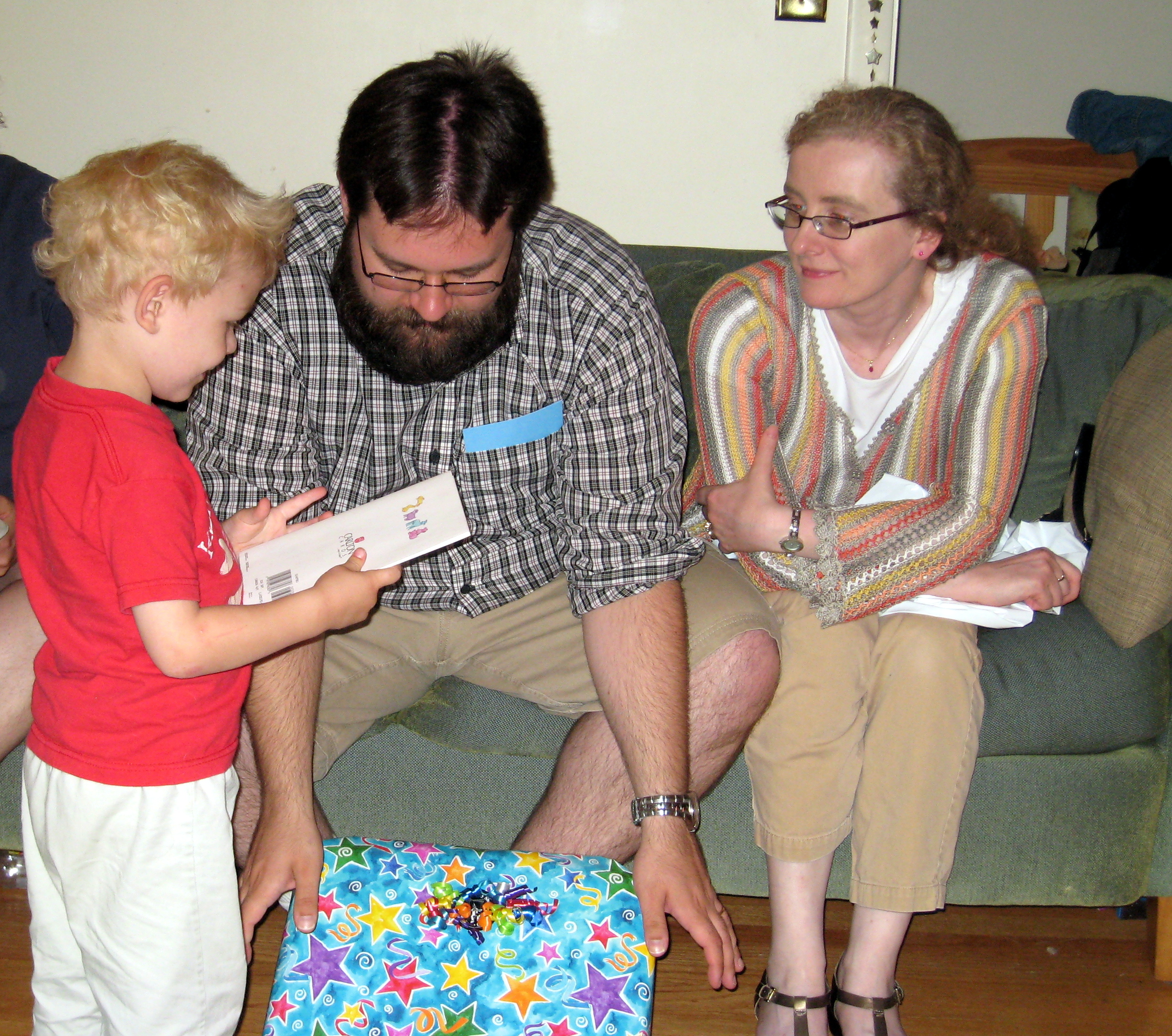 Cole, Xine, Juj and Marie opening presents (06-15-2008 17:32)