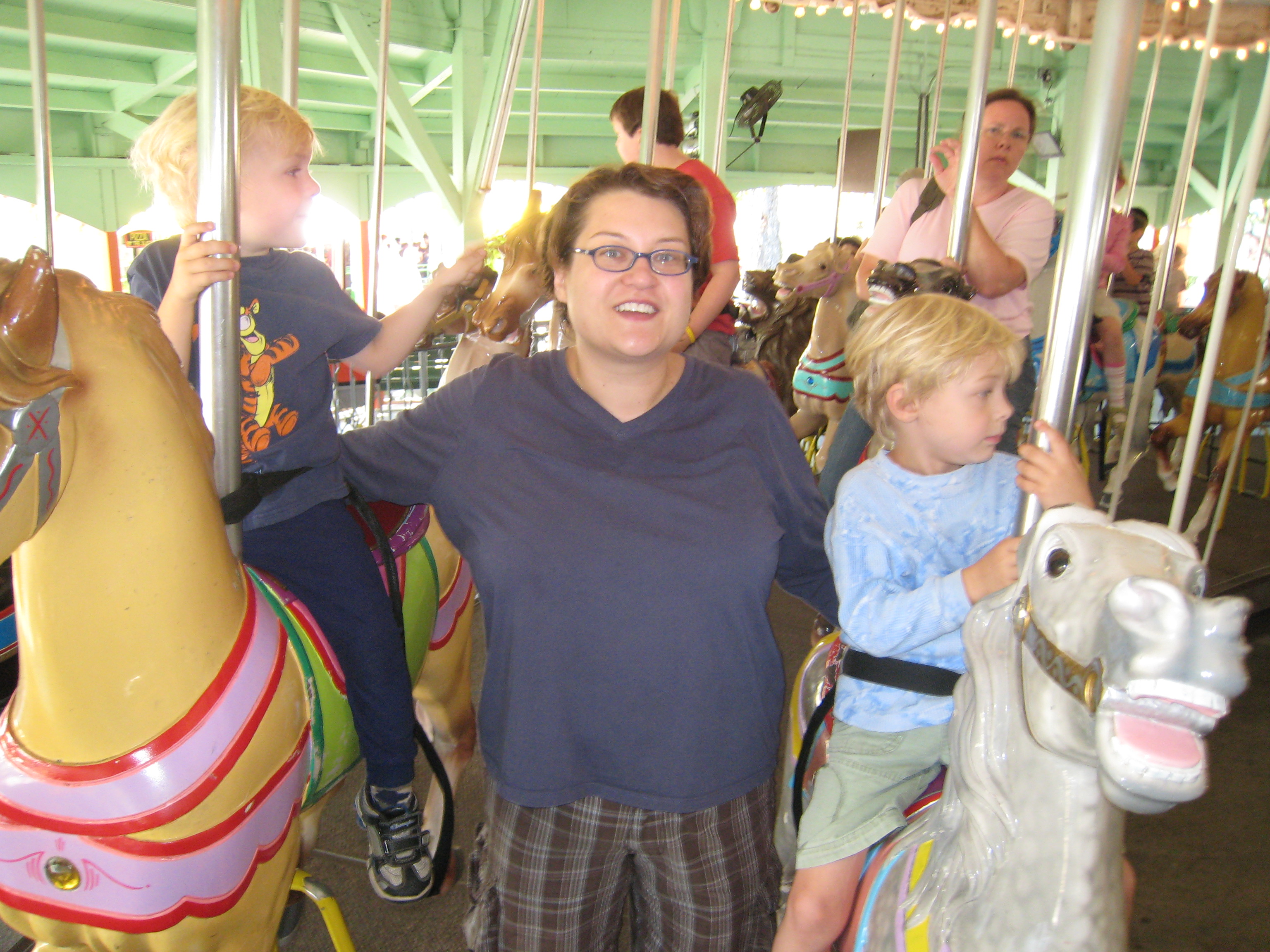 Cole, Xine and Tim on the merry-go-round (08-27-2008 11:46)