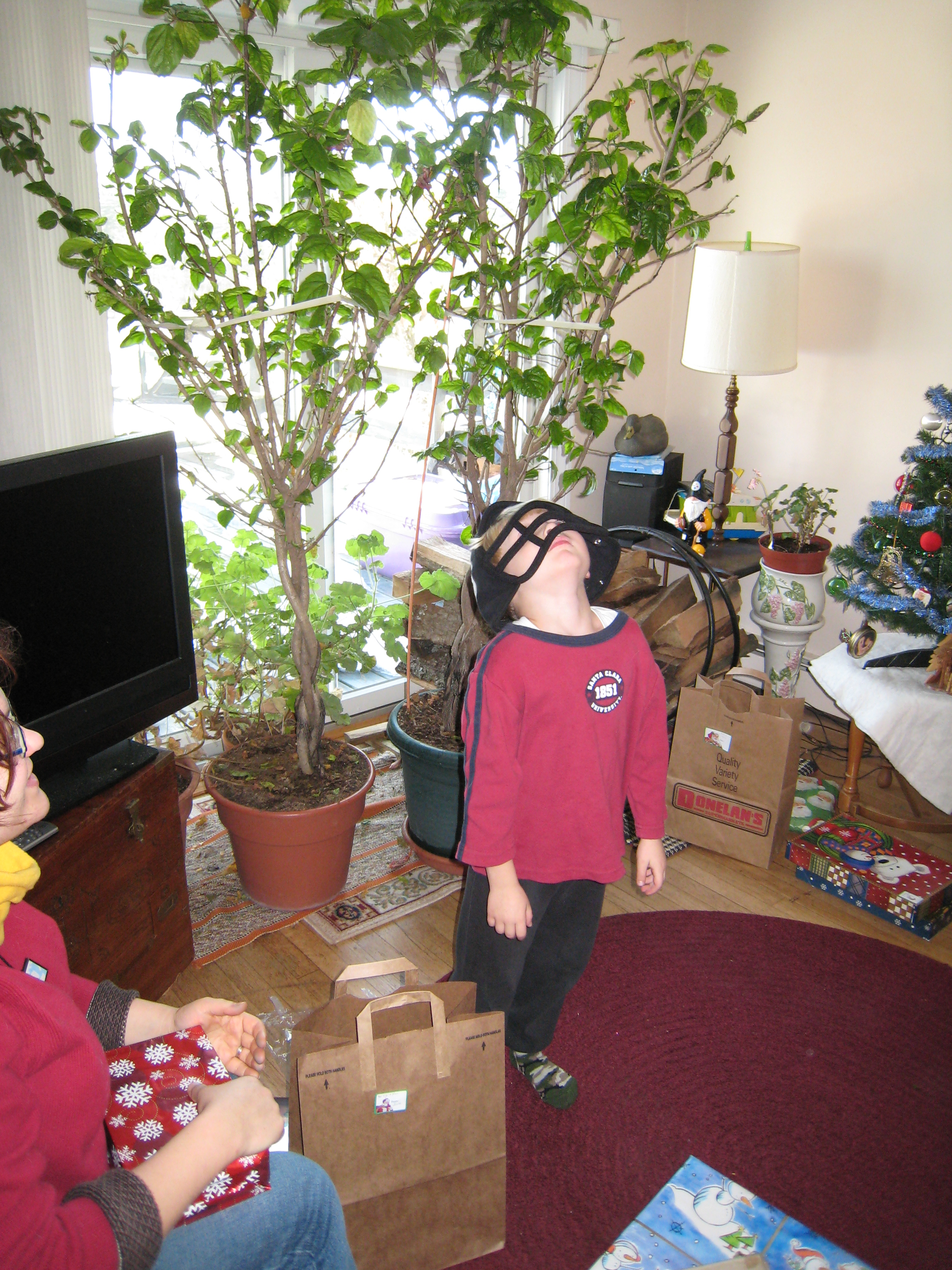 Mommy and Cole in Steelers helmet (12-25-2008 11:16)