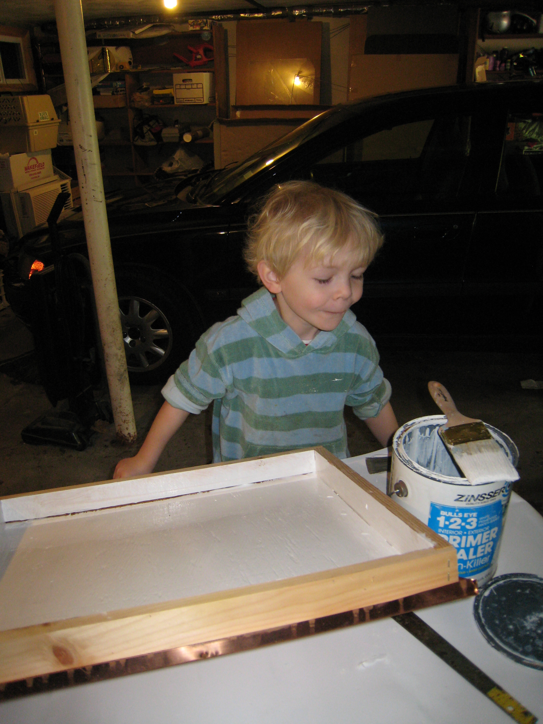 Cole painting beehives (04-10-2009 08:03)