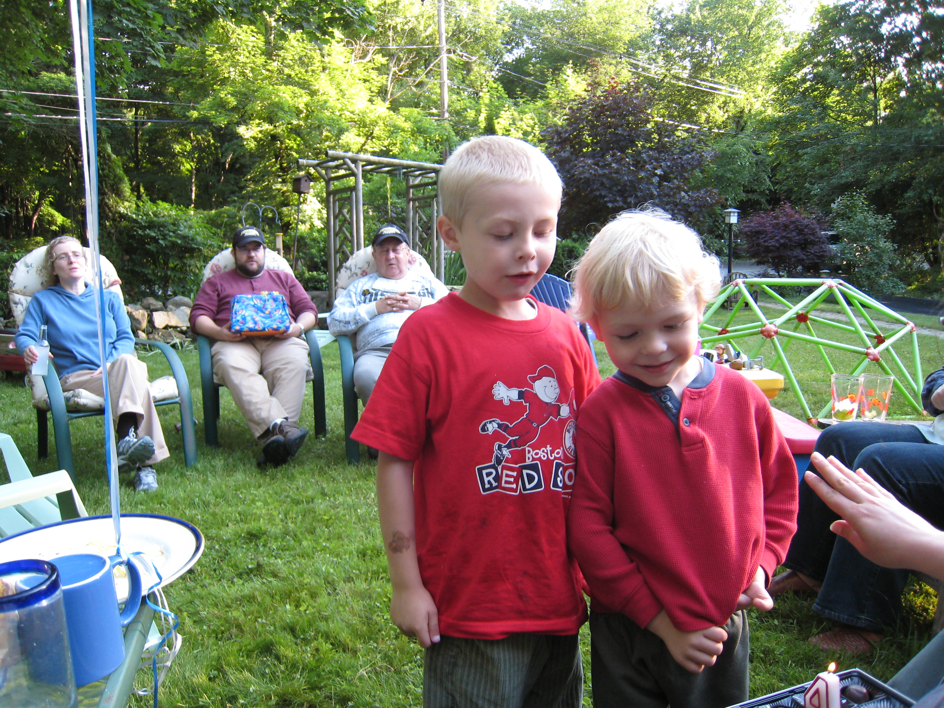 Marie, Juj, Poppy, Tim and Cole with candle (06-14-2009 18:45)