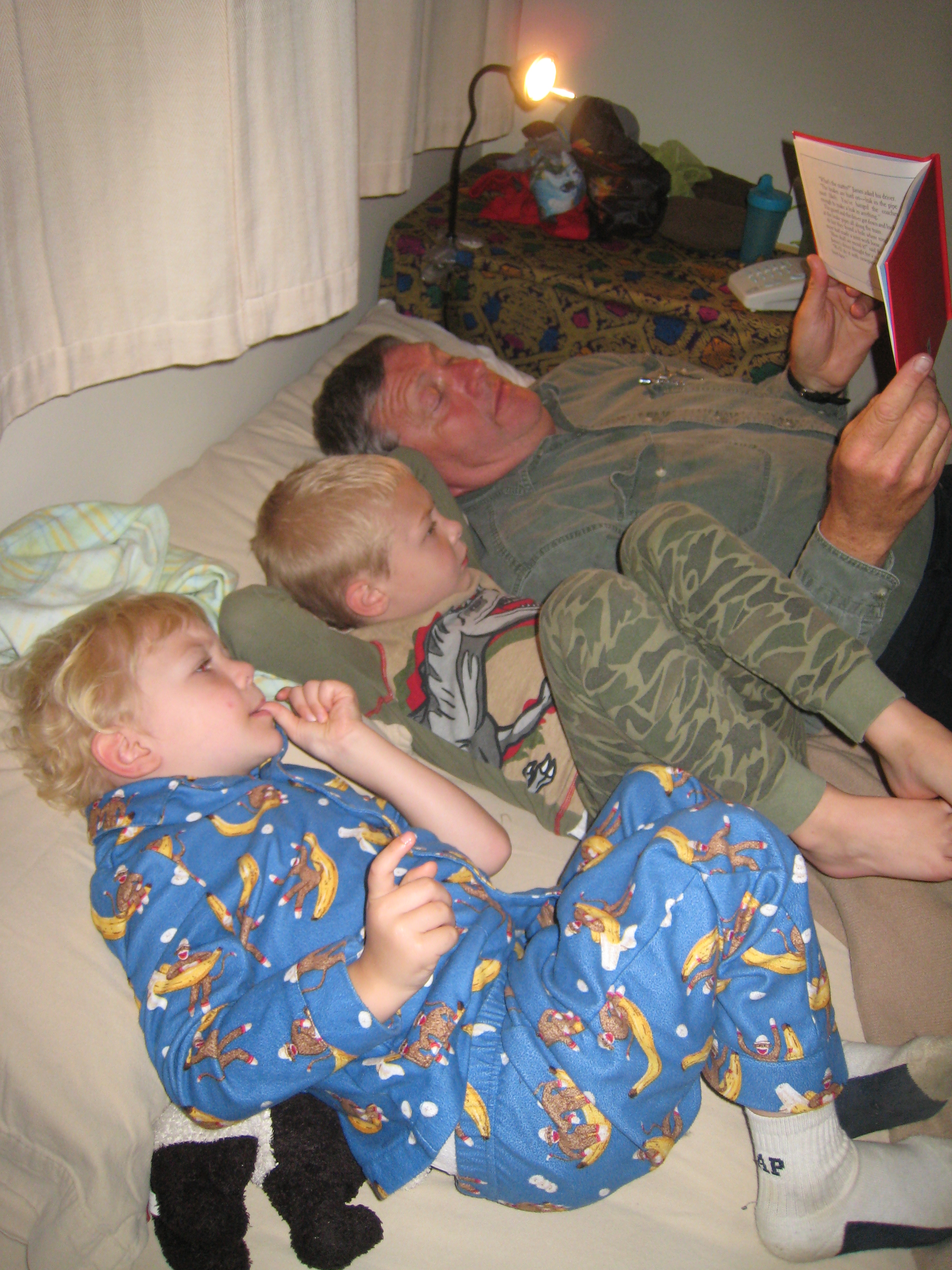 Cole, Tim and Granddad reading (07-04-2009 20:15)