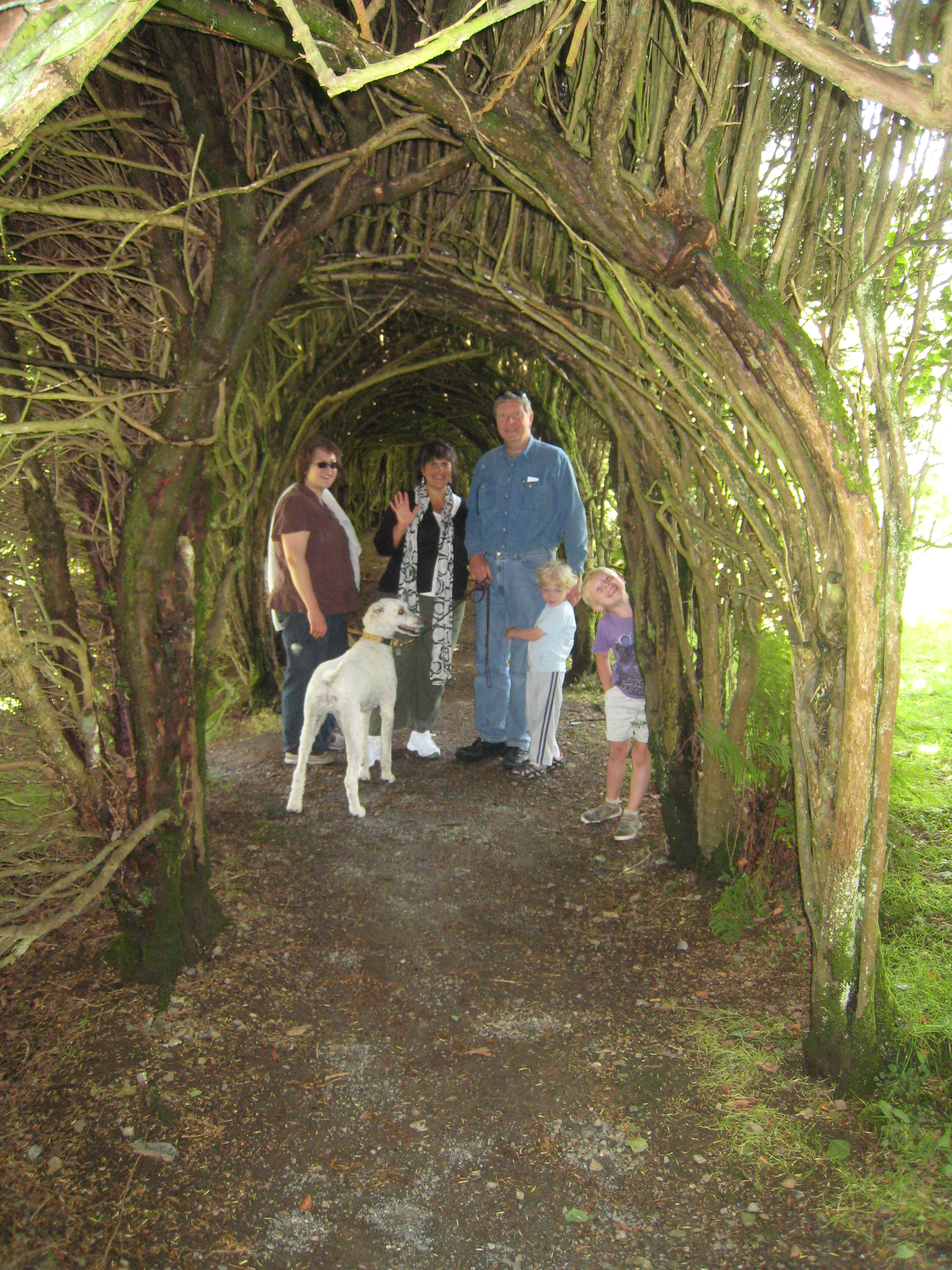 Xine, Tim, Bazzle, Donna, Granddad and Cole in the tree tunnel (07-12-2009 06:41)