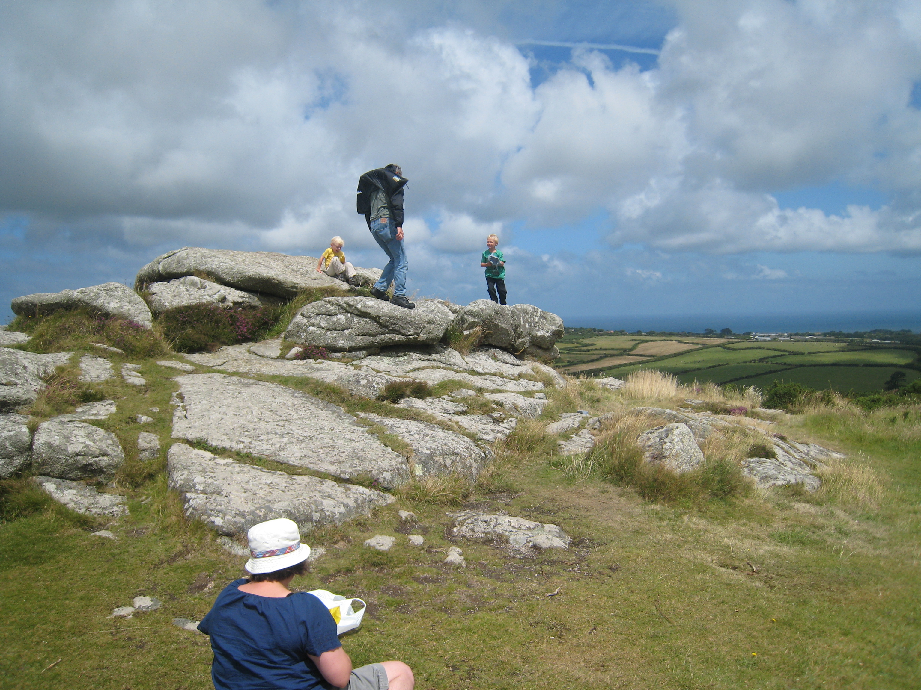 Ben's gallery: /236/035 - Cole, Tim, Granddad and Xine on top of Trencrom.jpg