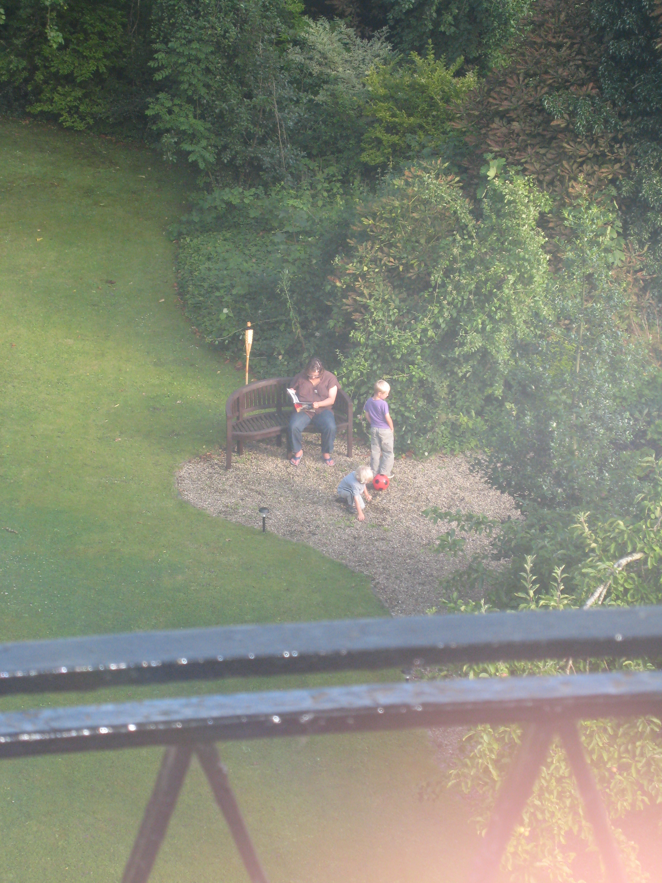 Xine, Tim and Cole playing in the garden of the Bailbrook Lodge (07-19-2009 17:48)