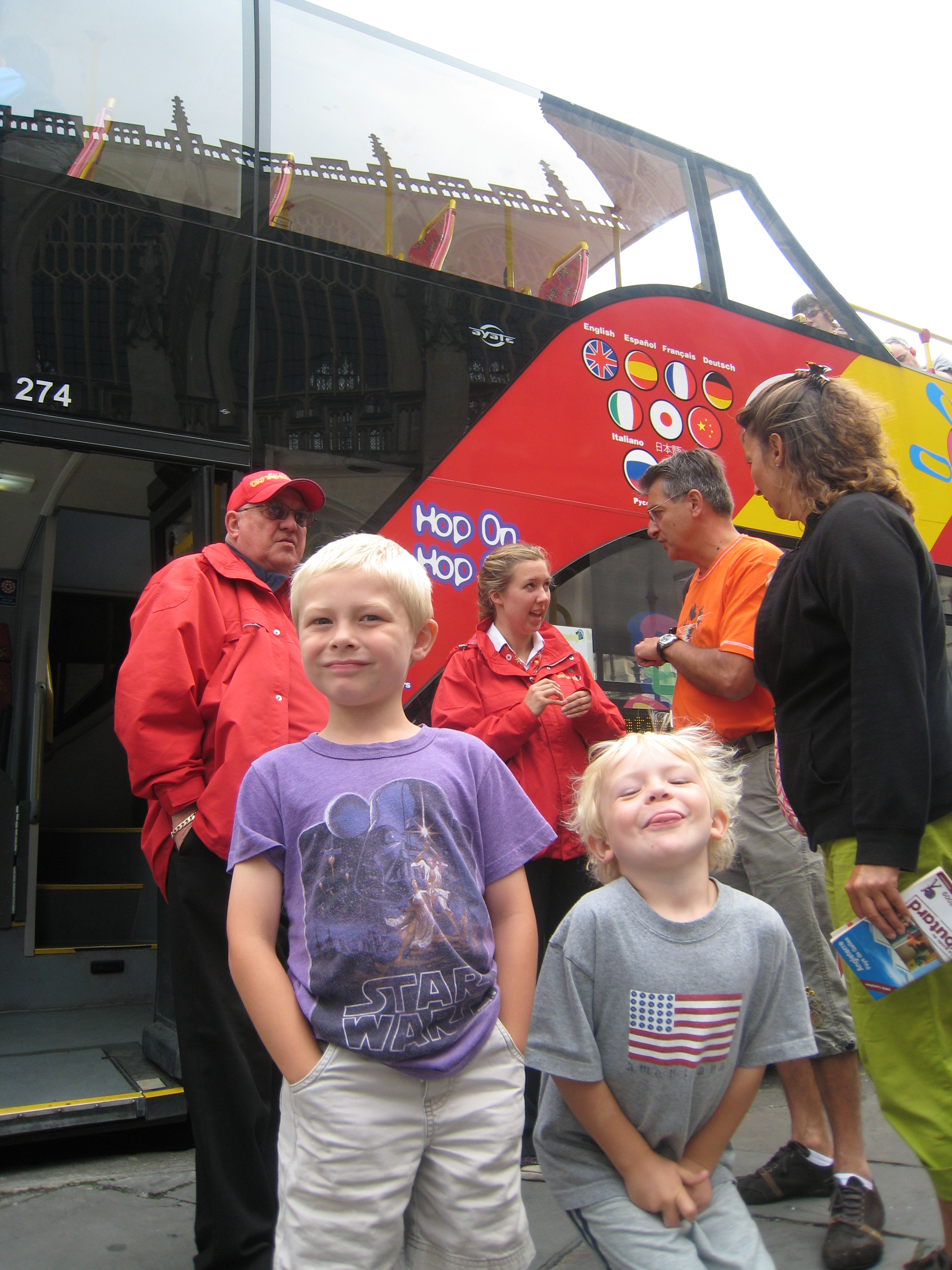 Tim and Cole by a double decker bus (07-20-2009 10:17)