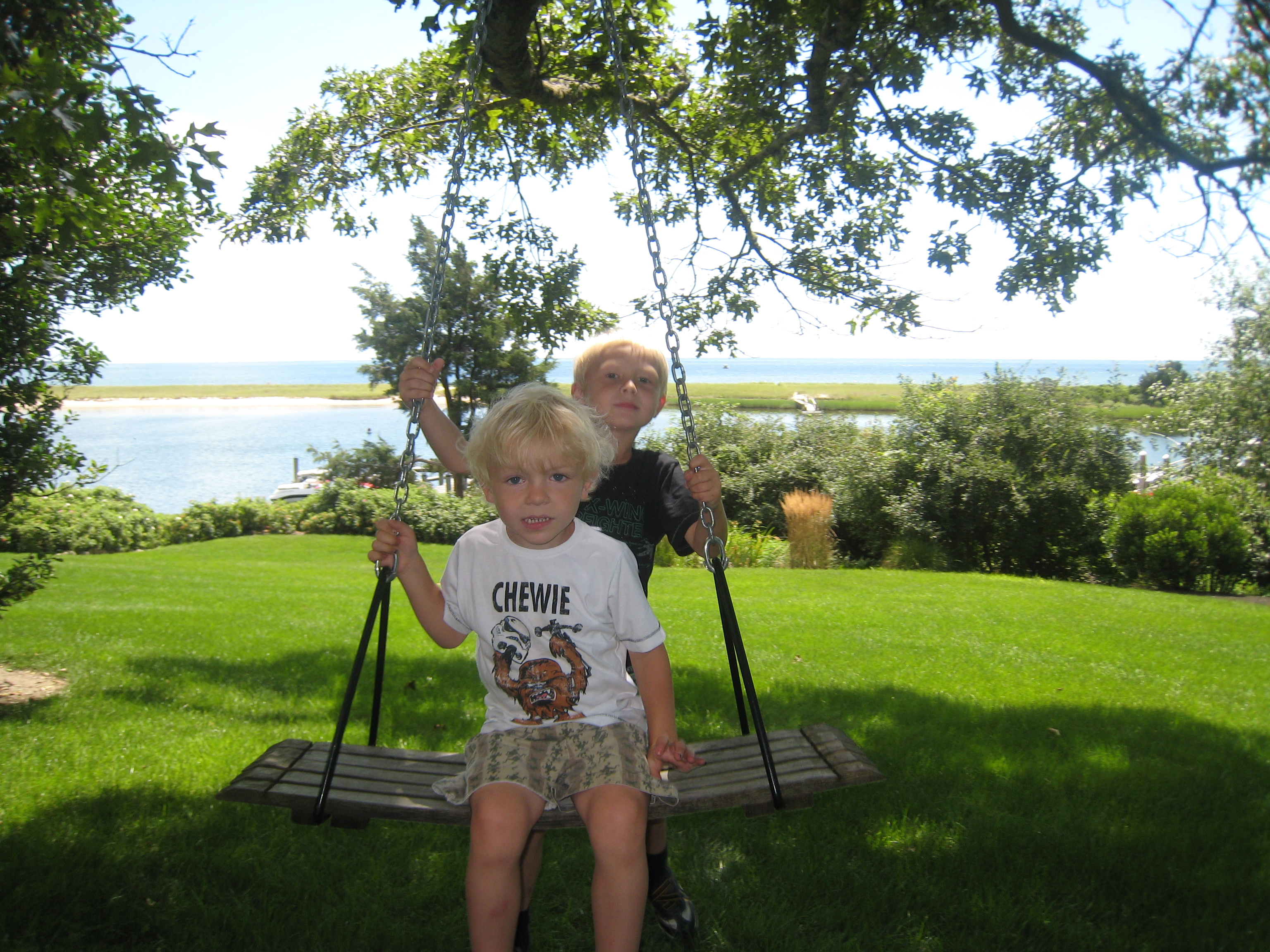 Cole and Tim on the swing at the Payne's (08-08-2009 10:55)