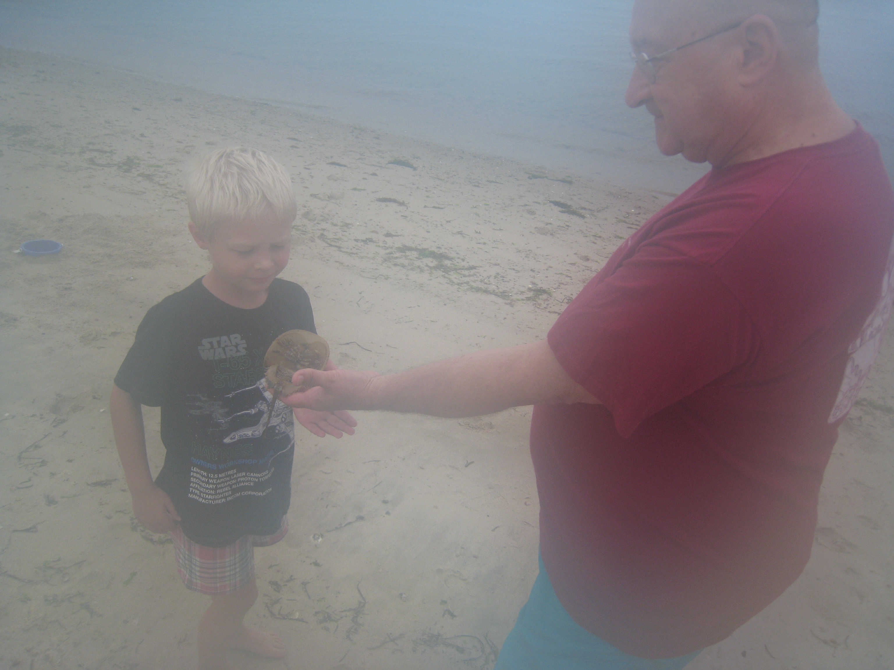 Tim, Poppy and a horseshoe crab (08-12-2009 09:02)