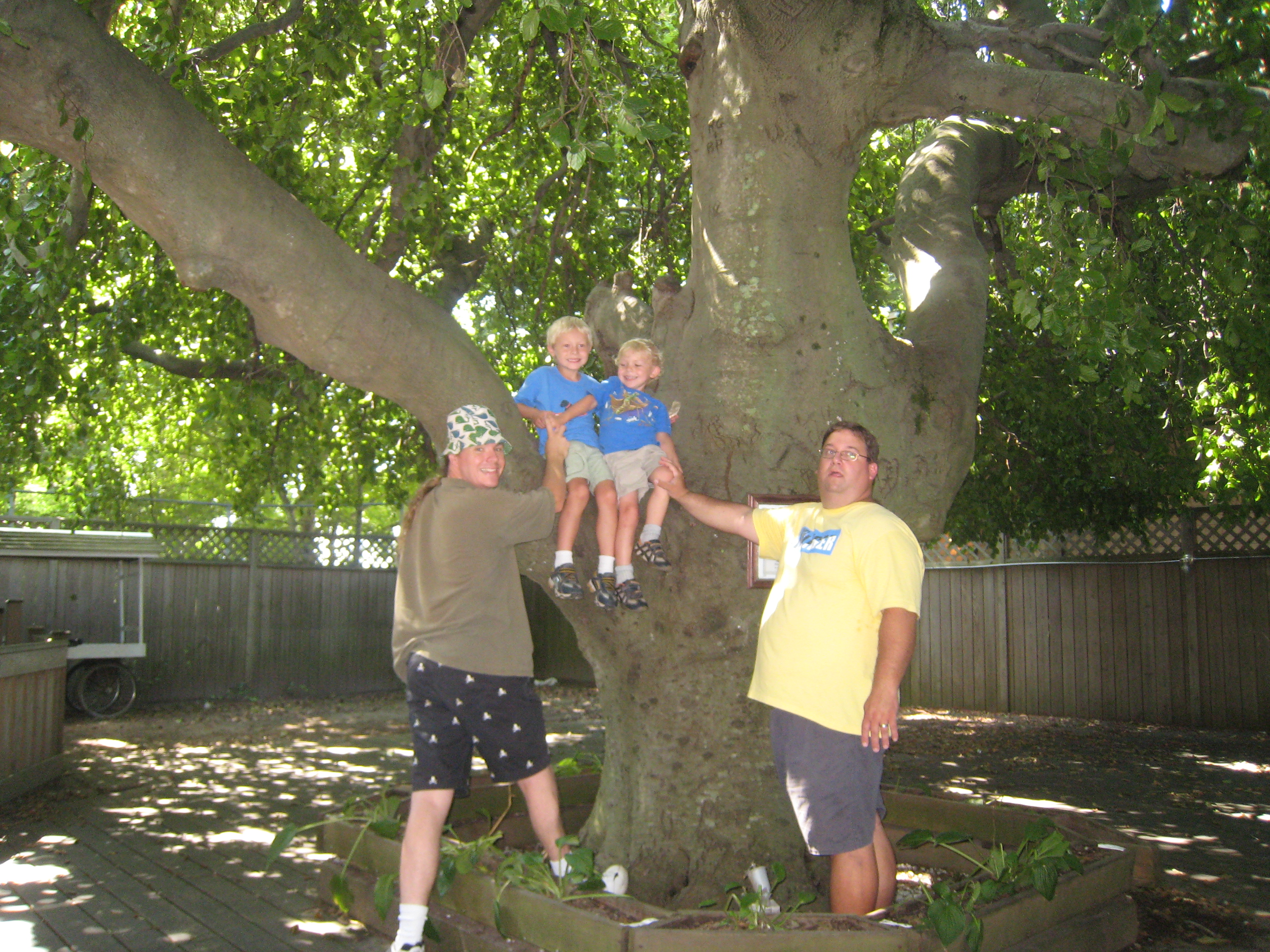 Ben, Tim, Cole and Matt under the weeping beech (08-15-2009 10:03)