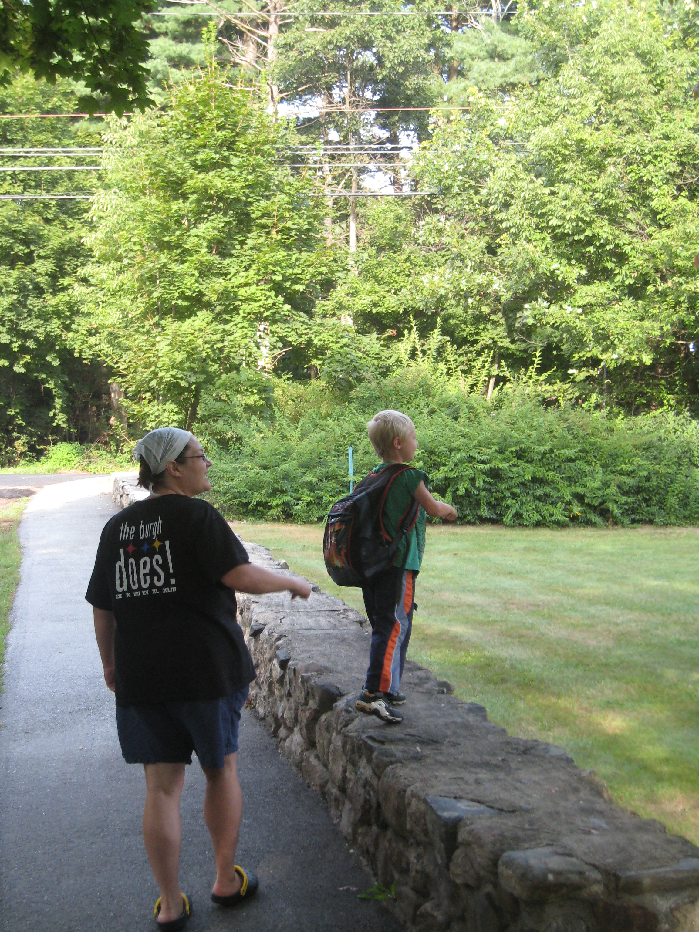 Xine and Tim walking to the bus stop (09-08-2009 07:31)