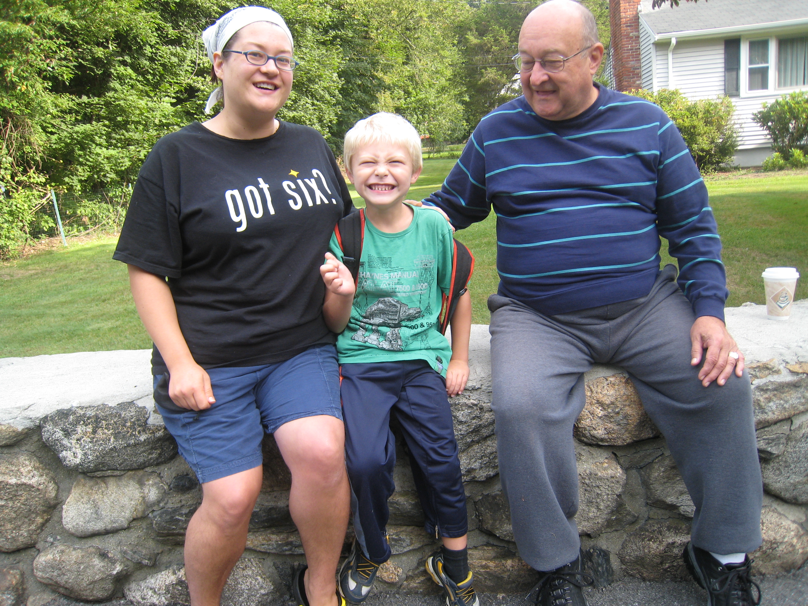 Xine, Tim and Poppy at the bus stop (09-08-2009 07:39)