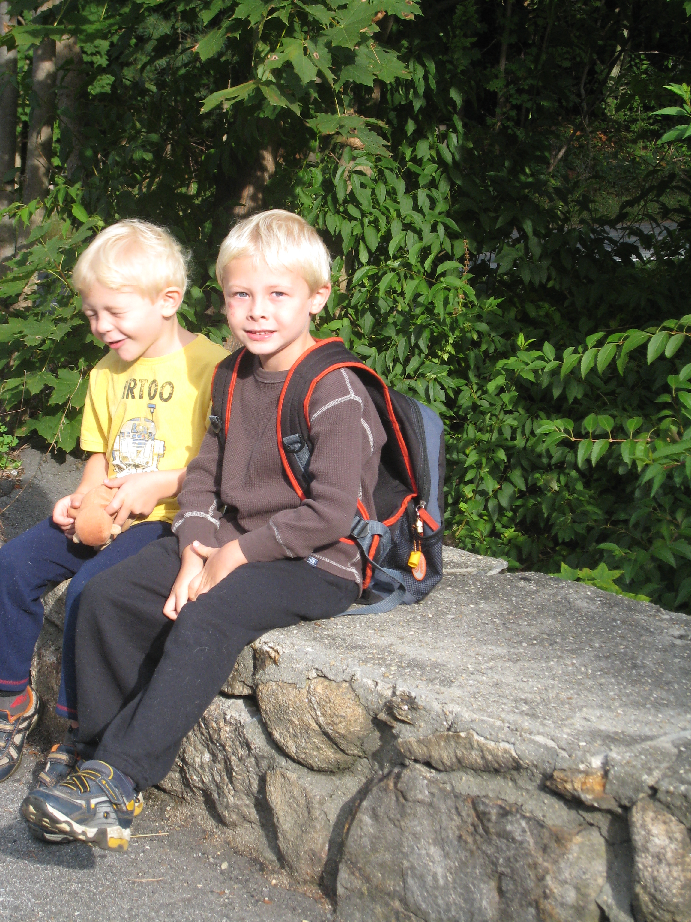 Cole and Tim waiting for the bus (09-14-2009 07:32)