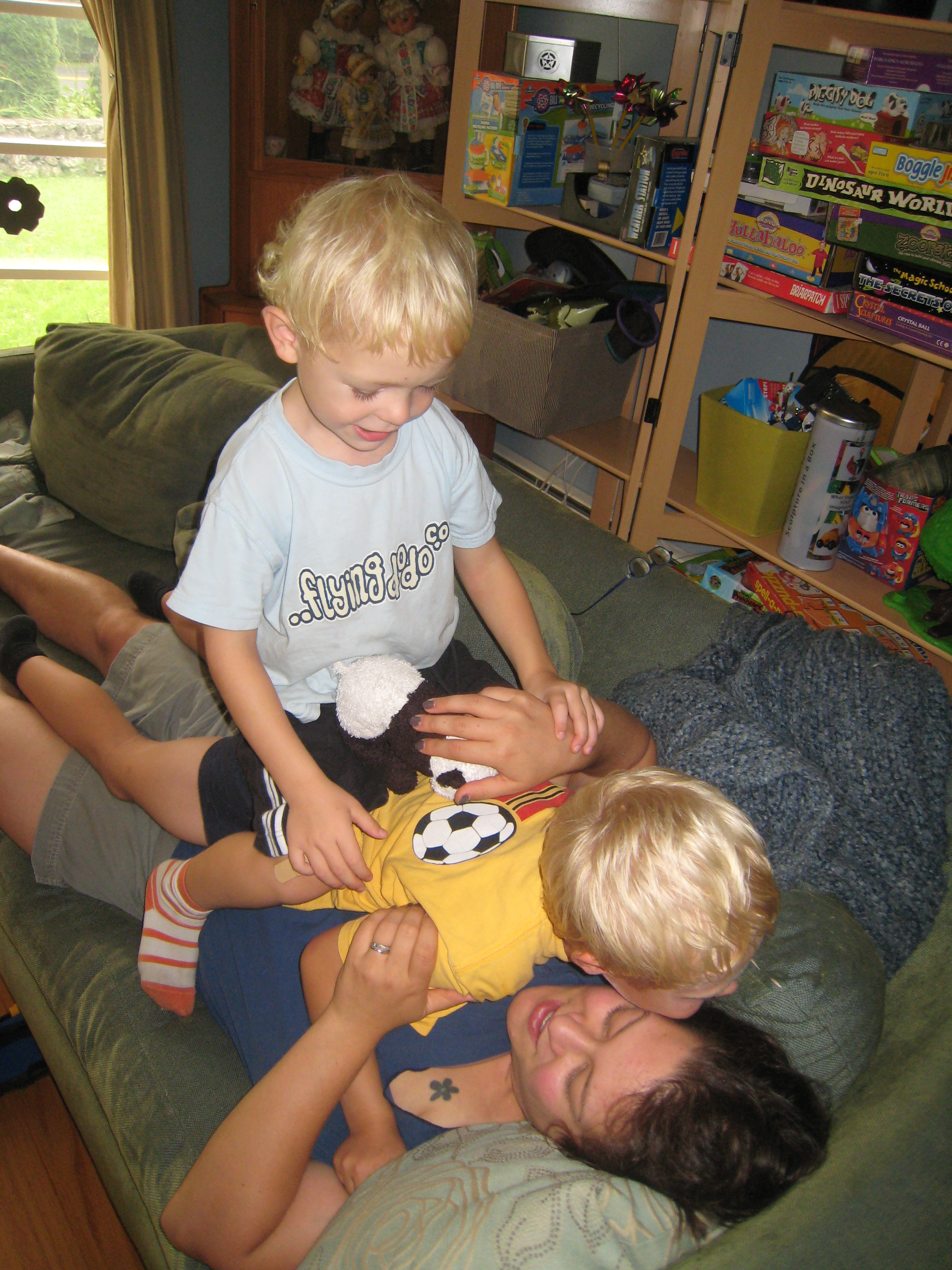 Tim and Cole helping Xine rest (09-23-2009 16:01)
