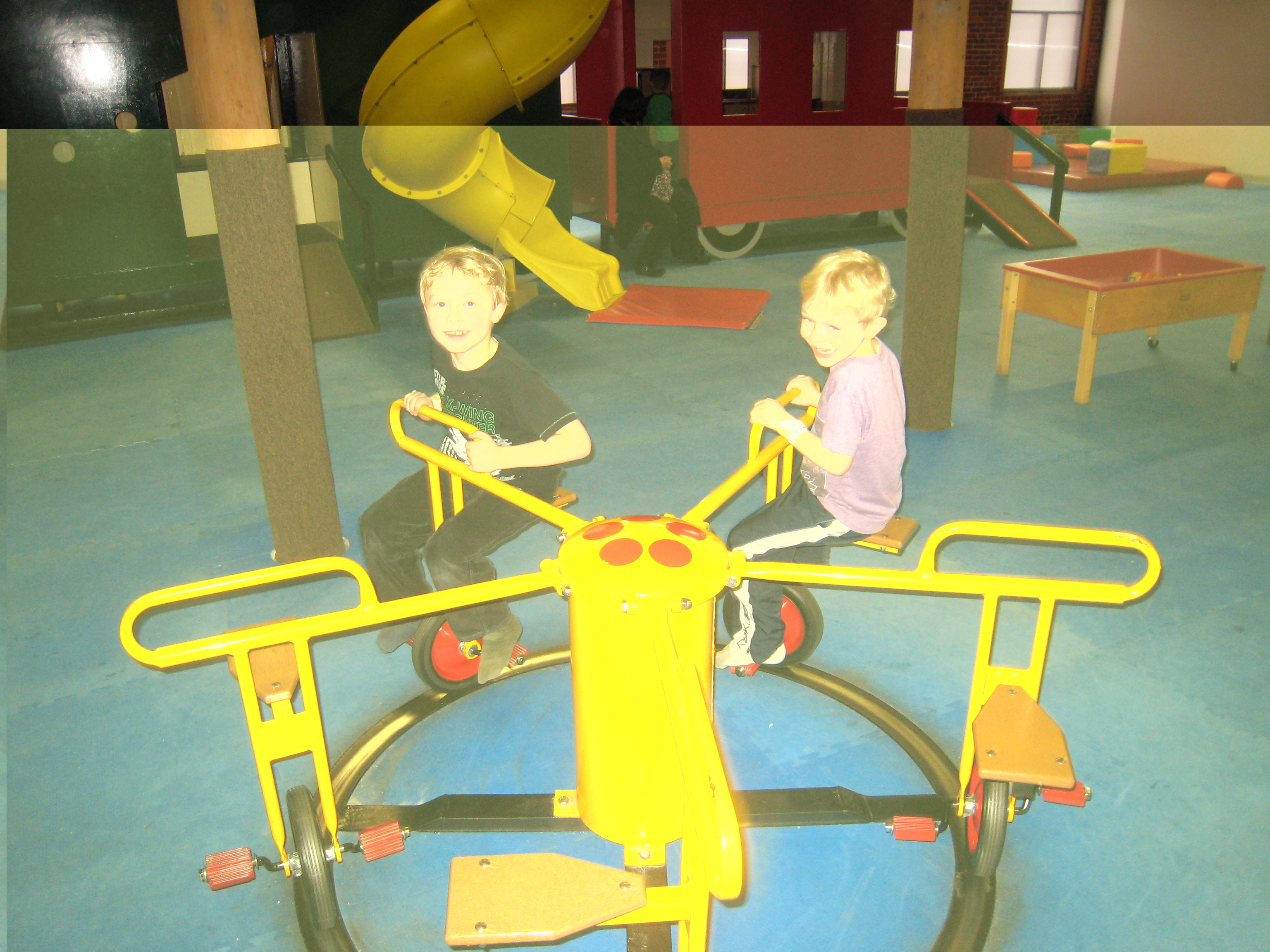 Tim and Cole riding the merry-go-round (03-03-2010 16:31)