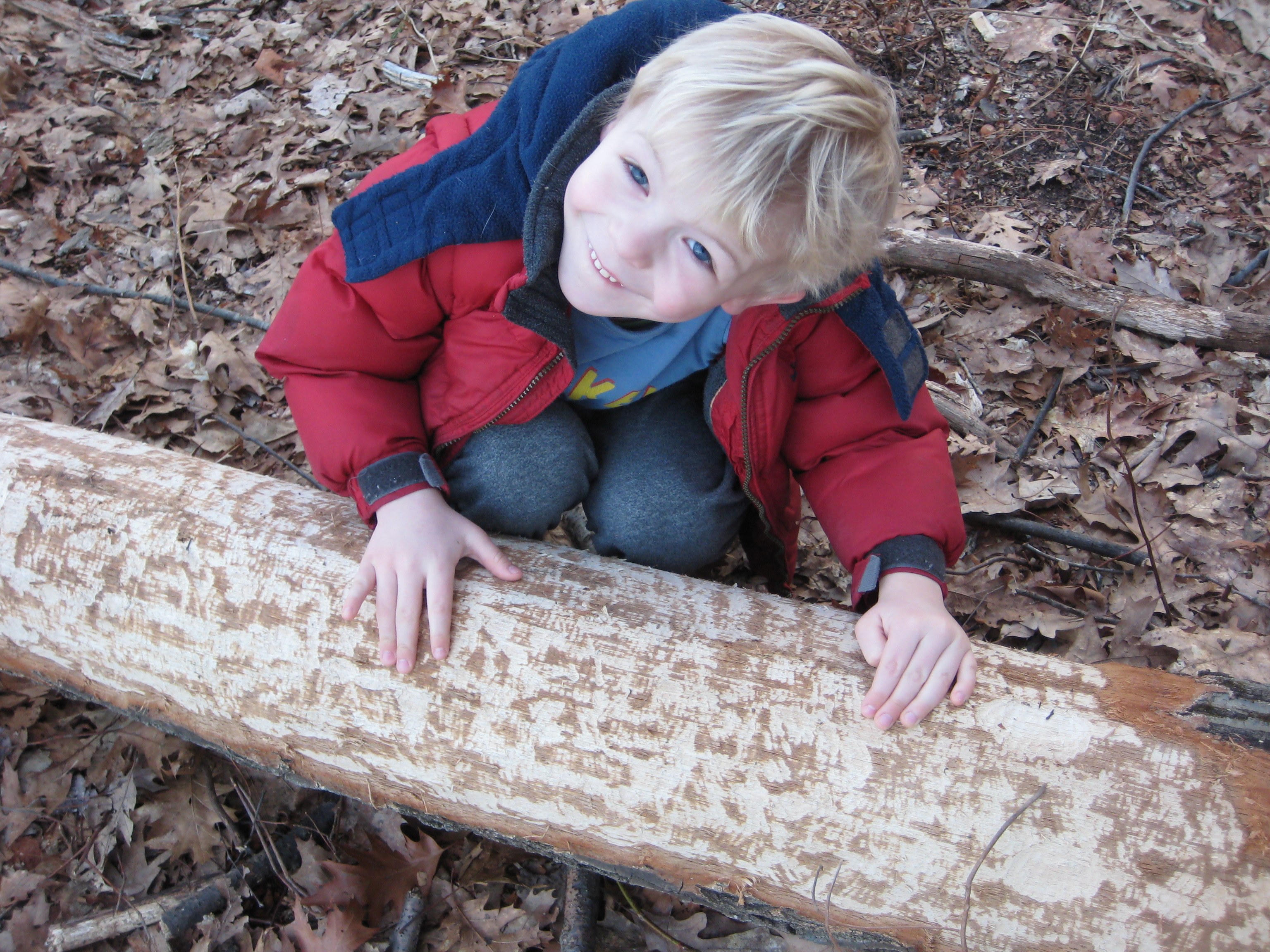 Cole examining a beaver's work at Fawn lake (03-05-2010 20:58)