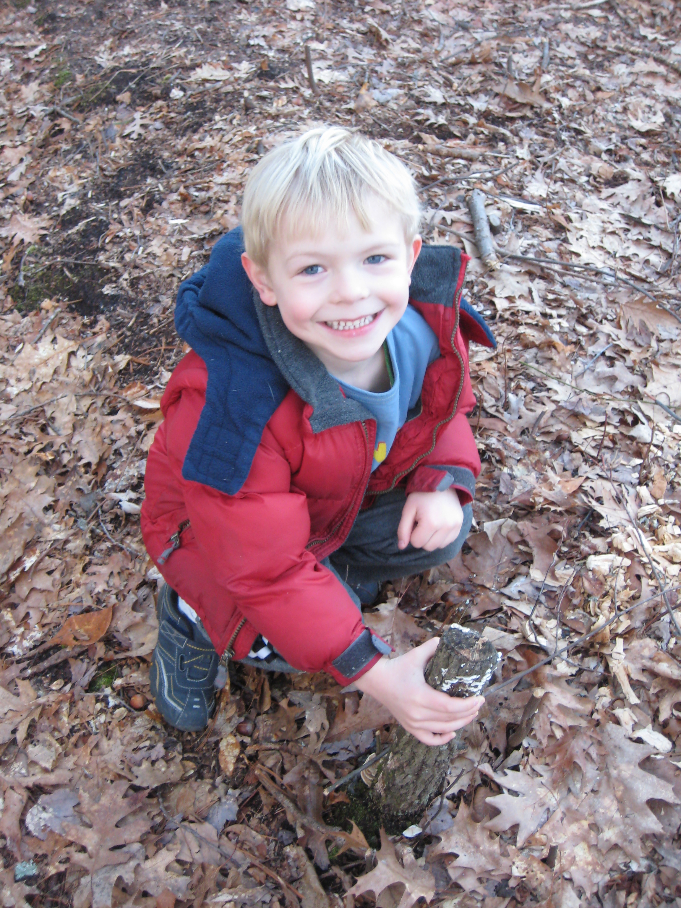 Cole examining a beaver's work at Fawn lake (03-05-2010 20:59)