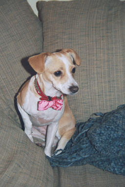 Emily with shiny collar and bowtie