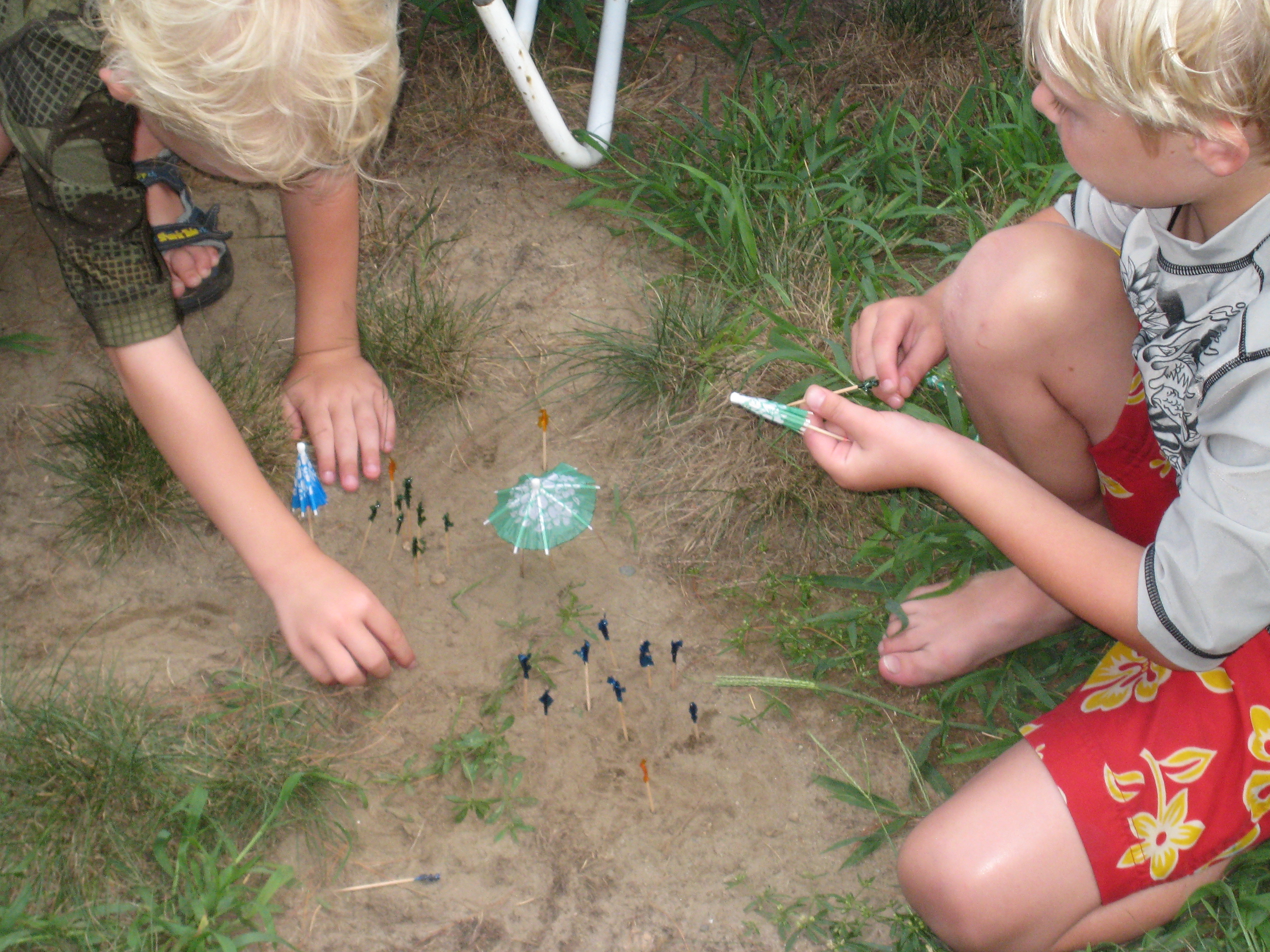Cole and Tim building a beach at the Tatroe's party (07-17-2010 18:28)