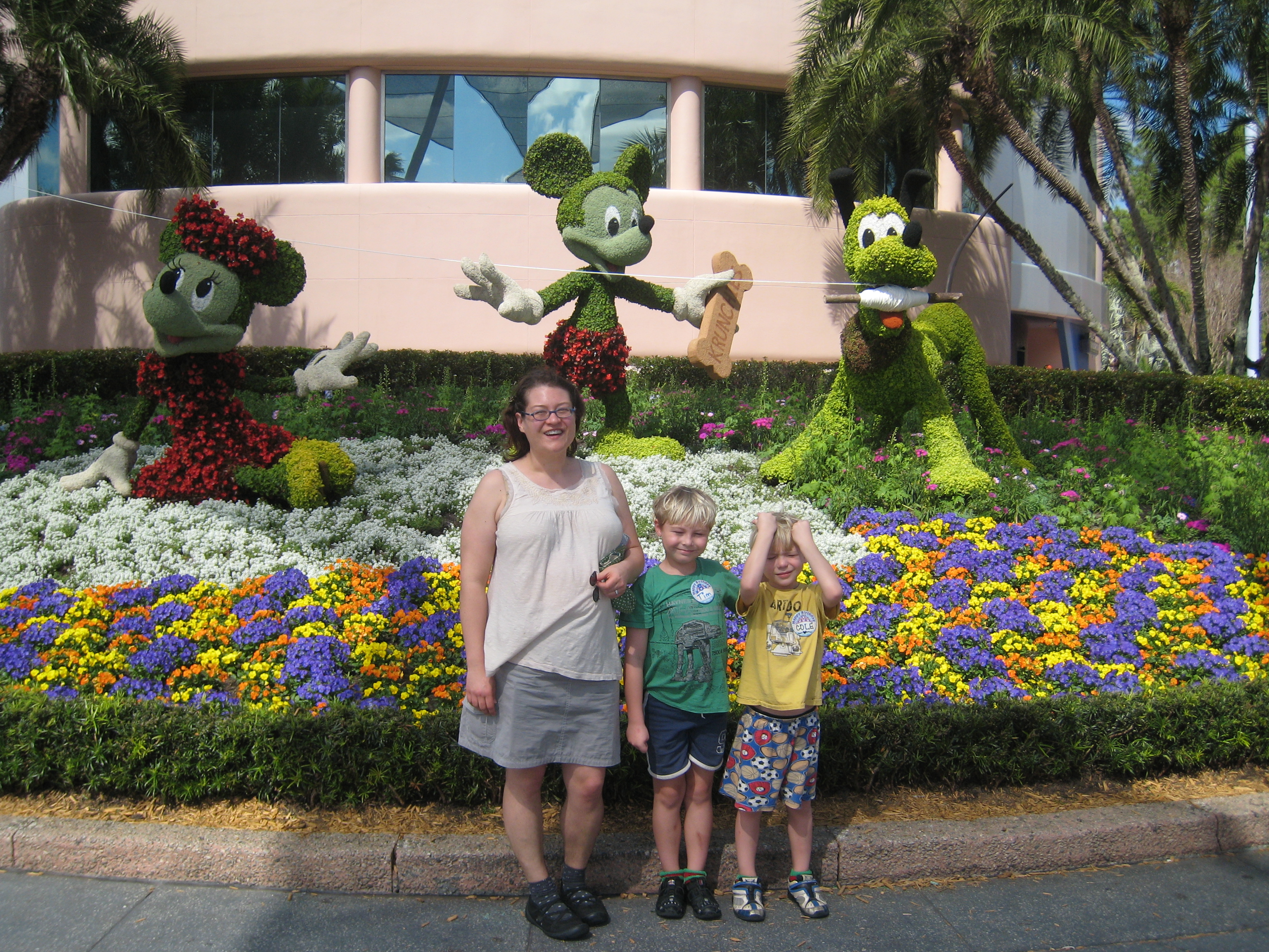 Ben's gallery: /295/0274 - Xine, Tim and Cole with verdant Mickey, Minnie and Pluto.jpg