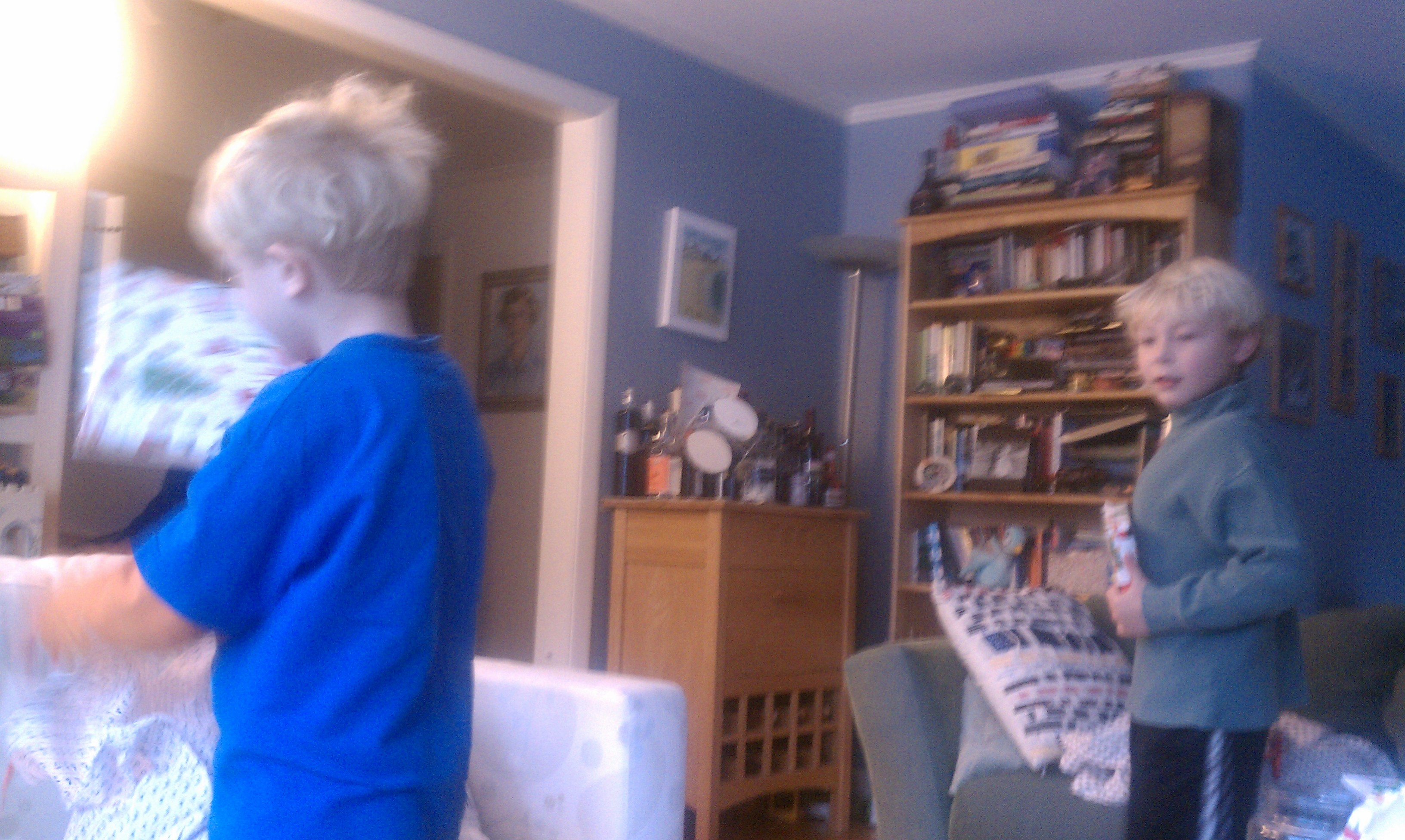 Cole and Tim opening presents (12-25-2010 07:49)