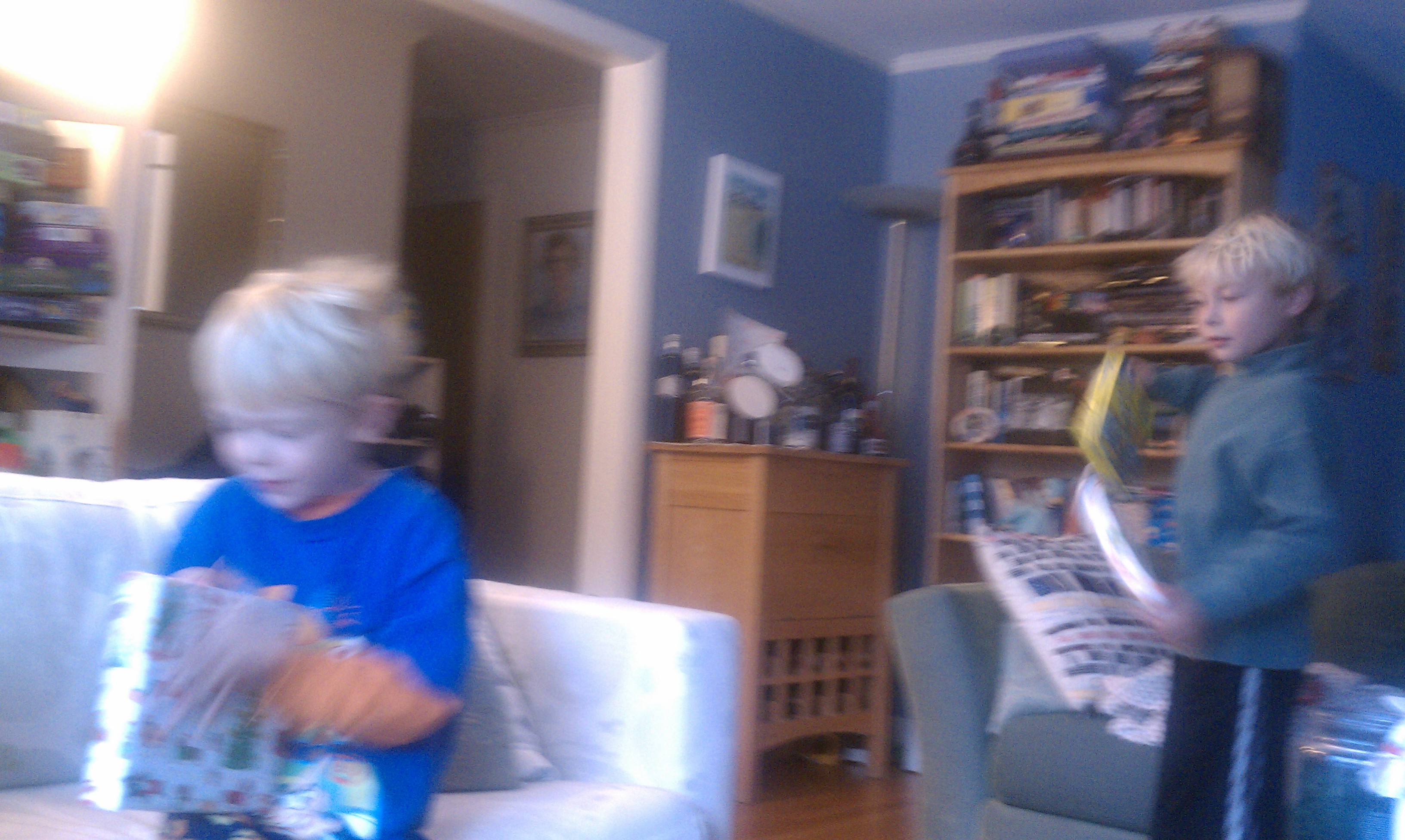Cole and Tim opening presents (12-25-2010 07:49)