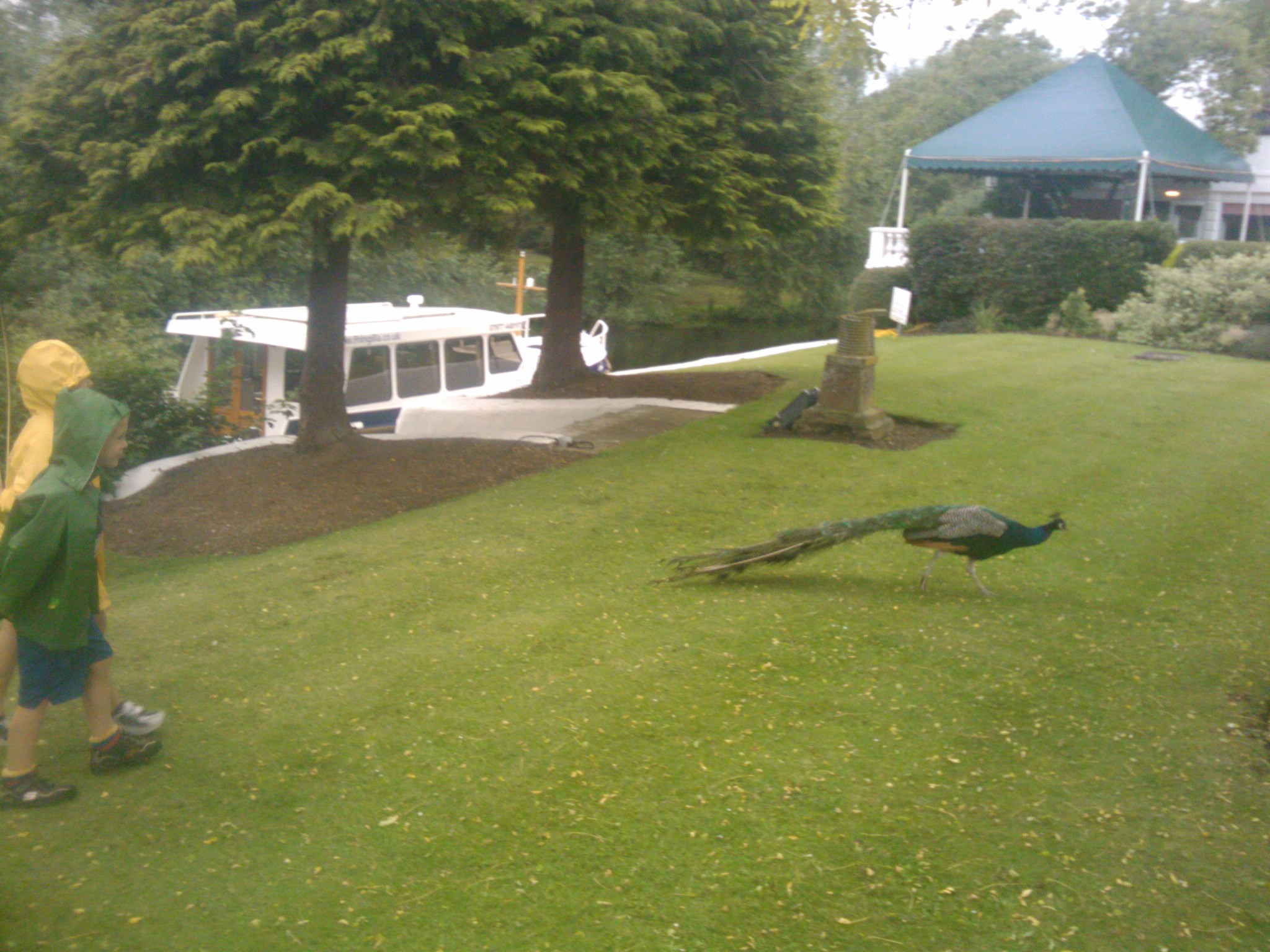 Tim and Cole following a peacock (07-20-2011 19:13)