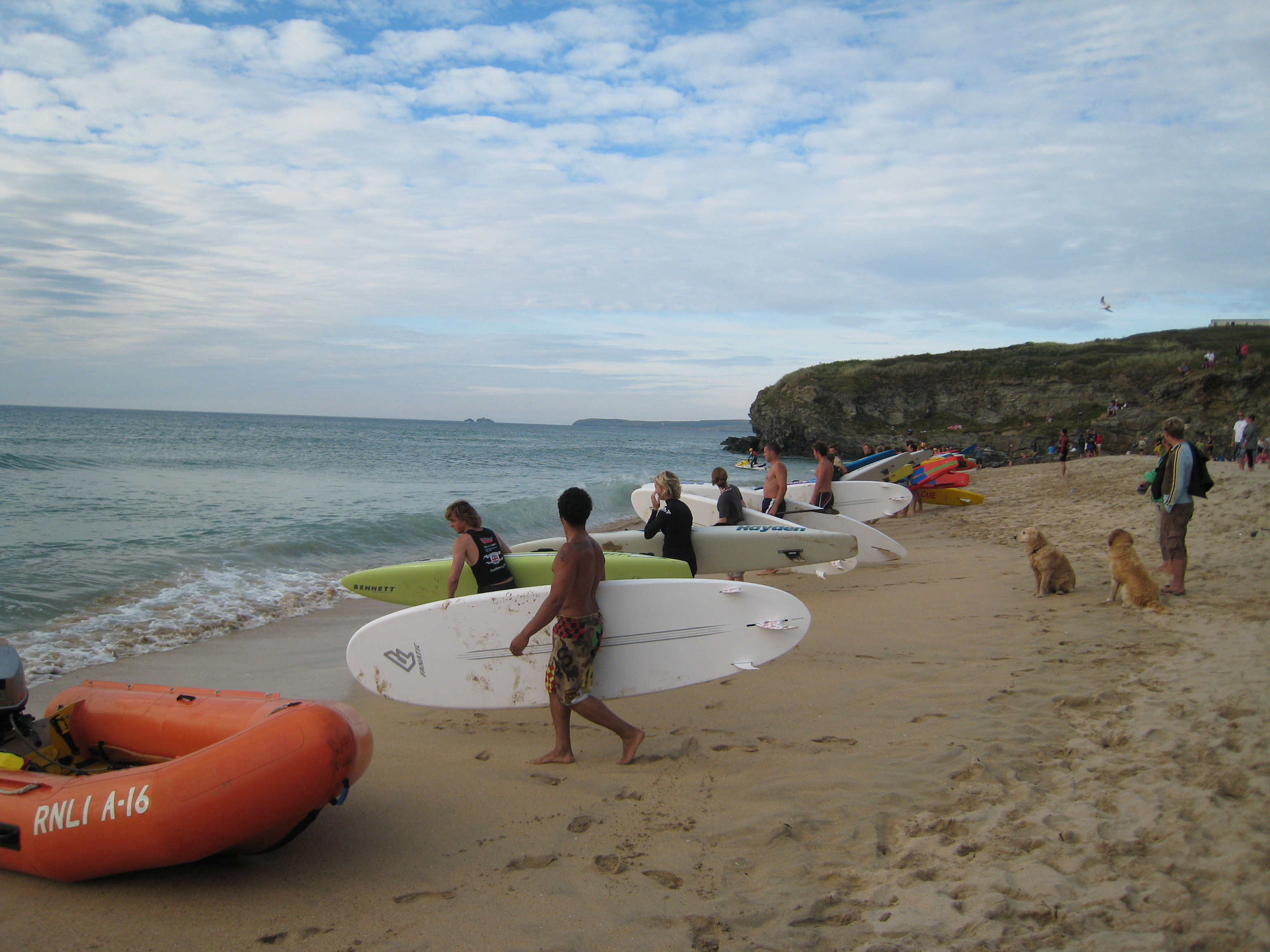 Surfers on Hayle beach preparing for a race (07-04-2011 19:09)