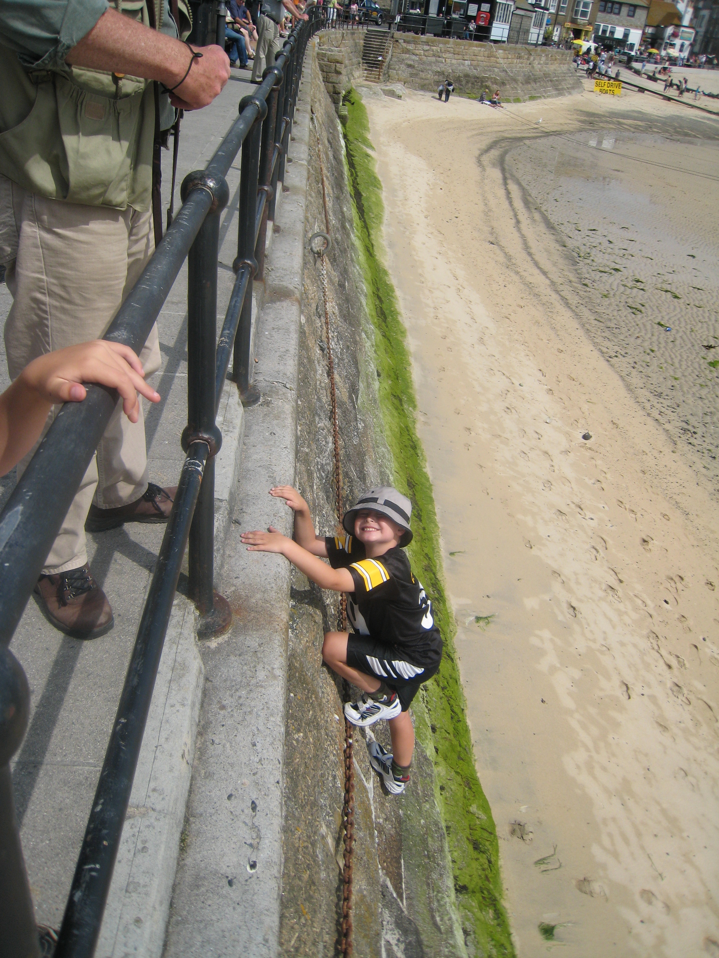 Tim climbing the St. Ives quay (07-11-2011 11:23)